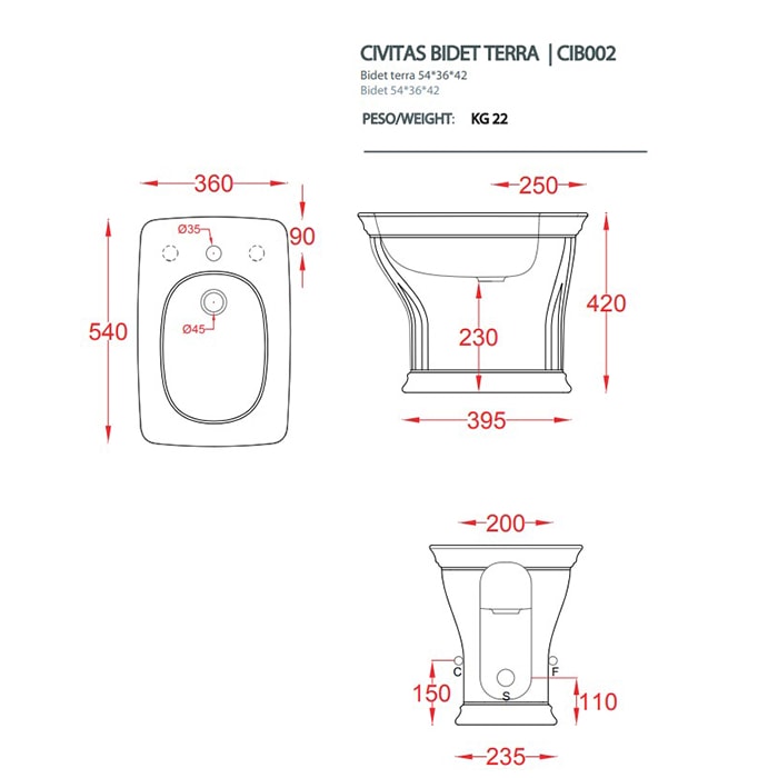 Модель Civitas оснащена одним отверстием для смесителя, что упрощает установку и использование. Напольная конструкция обеспечивает надежность и стабильность, а отсутствие угловых элементов делает биде более безопасным и удобным в эксплуатации.