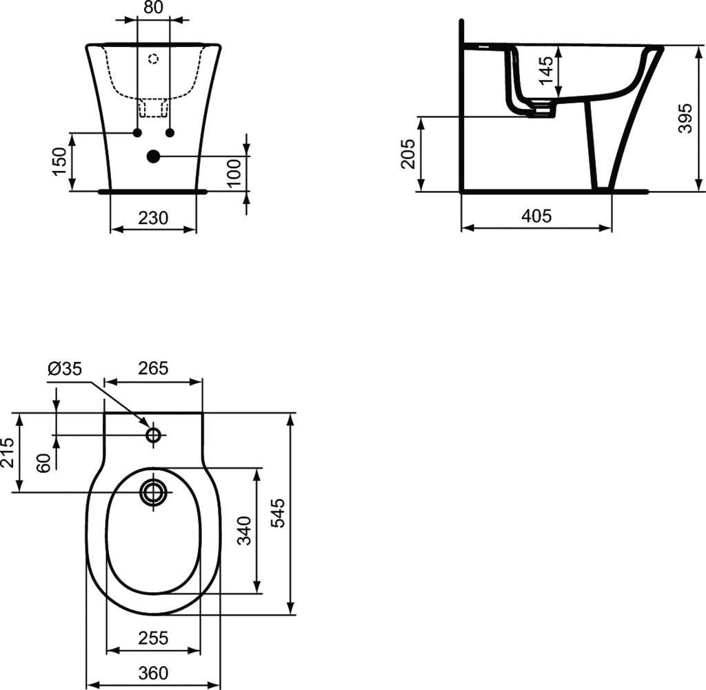Биде выполнено в овальной форме и имеет компактные размеры: 360 мм в ширину, 545 мм в глубину и 395 мм в высоту, что позволяет легко вписать его в любое пространство. Белый цвет изделия придаст вашему интерьеру свежесть и элегантность.