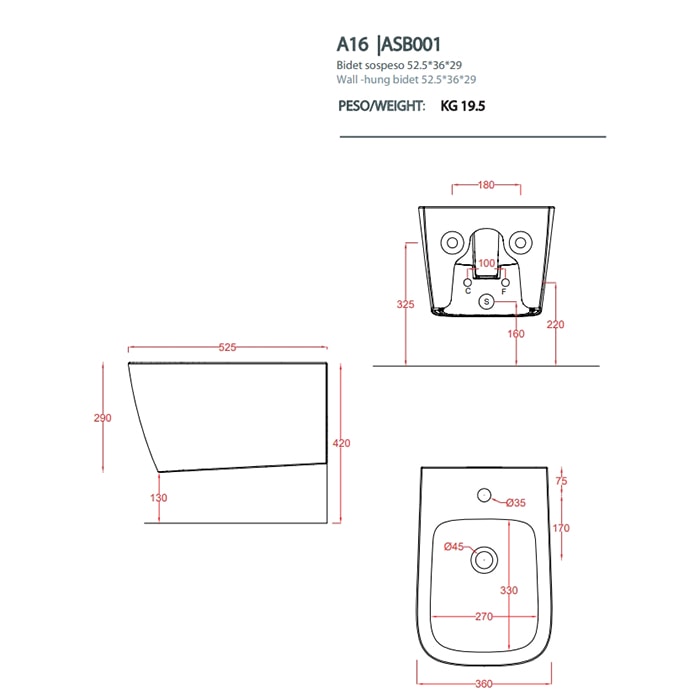 Биде Artceram A16 оснащено одним отверстием для смесителя, что упрощает процесс установки и использования. Благодаря подвесной конструкции, оно не только экономит пространство, но и облегчает уборку в ванной комнате. Угловая конструкция отсутствует, что позволяет установить биде в любом удобном месте.