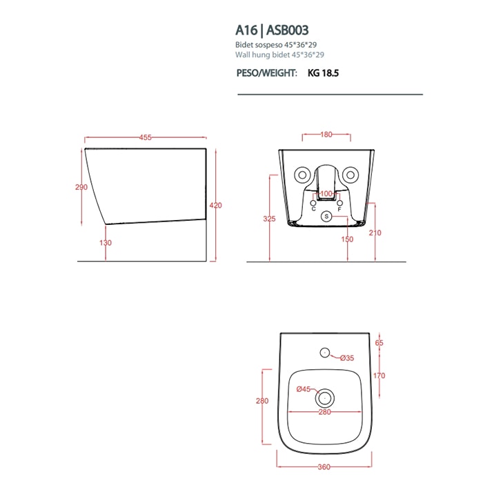 Модель A16 ASB003 01 00 оснащена одним отверстием для смесителя, что упрощает процесс установки и использования. Подвесная конструкция позволяет сэкономить место и облегчает уборку, что особенно важно для современных ванных комнат. Биде не имеет угловой конструкции, что делает его универсальным решением для любого стиля оформления.