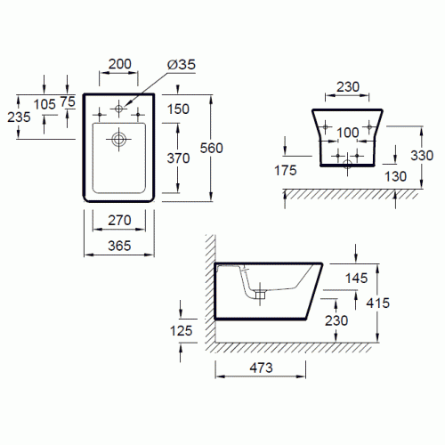 Биде выполнено из качественного санфаянса, что обеспечивает долговечность и легкость в уходе. Его прямоугольная форма и белый цвет придают ванной комнате стильный и современный вид. Размеры биде: высота — 410 мм, ширина — 365 мм, глубина — 560 мм, что позволяет удобно разместить его даже в небольших помещениях.