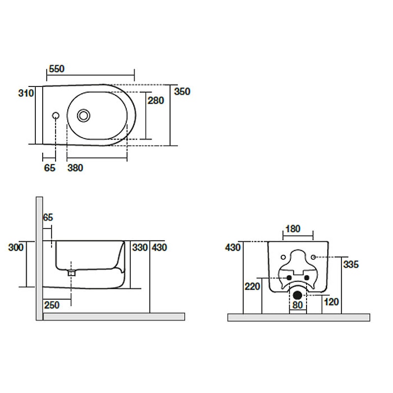 - Размеры (ШхВхД): 350х330х550 мм, что позволяет удобно разместить биде даже в небольших помещениях.