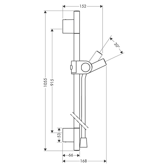 Душевая штанга Axor Uno выполнена из прочной латуни, что обеспечивает долговечность и устойчивость к коррозии. Хромированный цвет придает ей элегантный вид, который легко впишется в любой интерьер ванной комнаты. С высотой 1055 мм и глубиной 168 мм, штанга идеально подходит для установки в стандартных душевых зонах.
