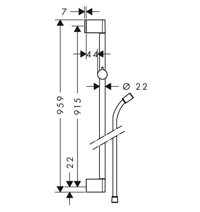 - Состоит из: душевая штанга, держатель для душа, ползунок