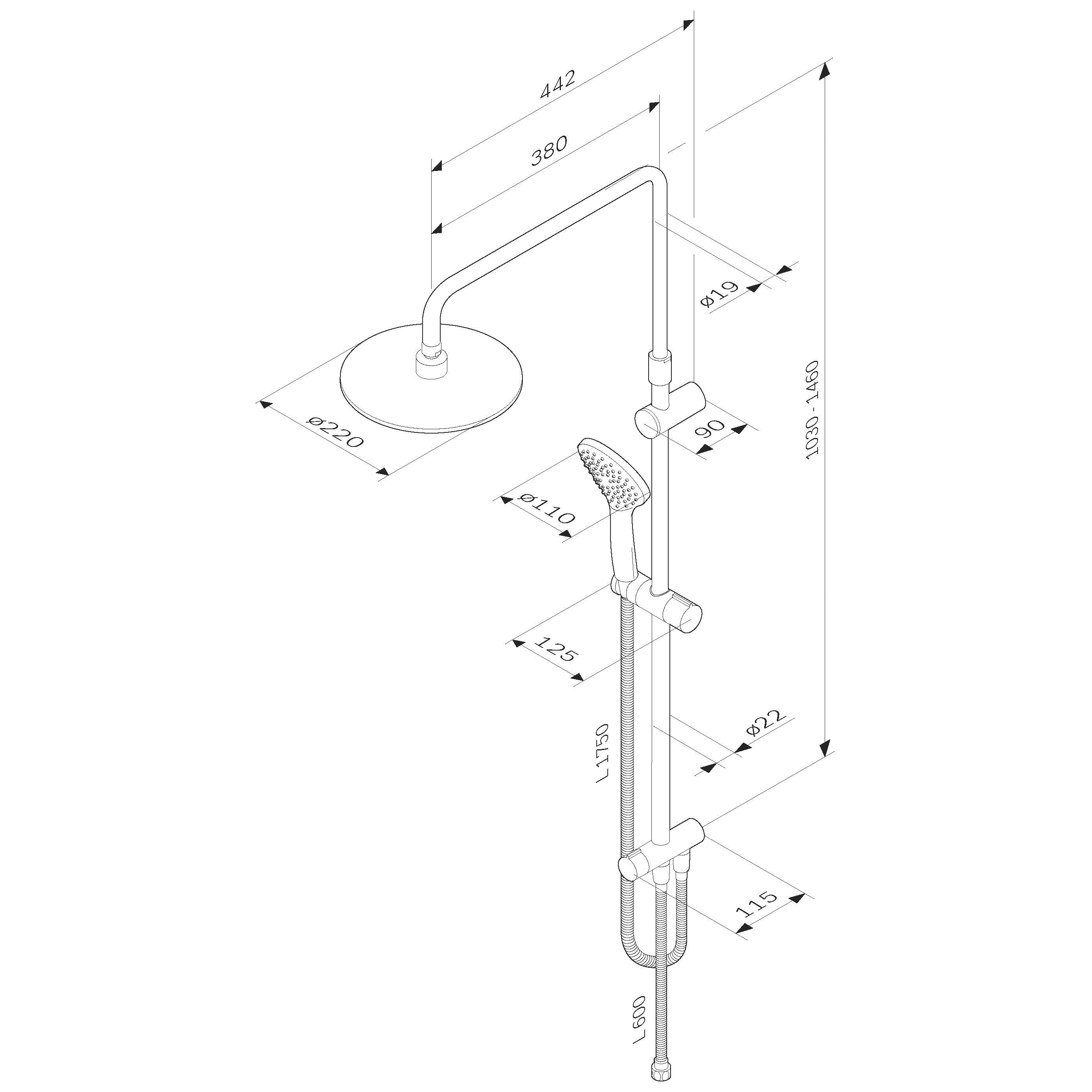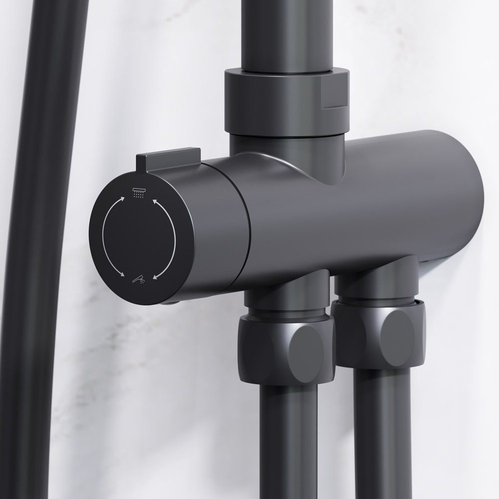 Управление душевой системой осуществляется с помощью вентильного механизма, что обеспечивает простоту и удобство в использовании. Телескопическая поворотная штанга регулируется по высоте в диапазоне от 1030 до 1460 мм, что делает ее удобной для людей любого роста.