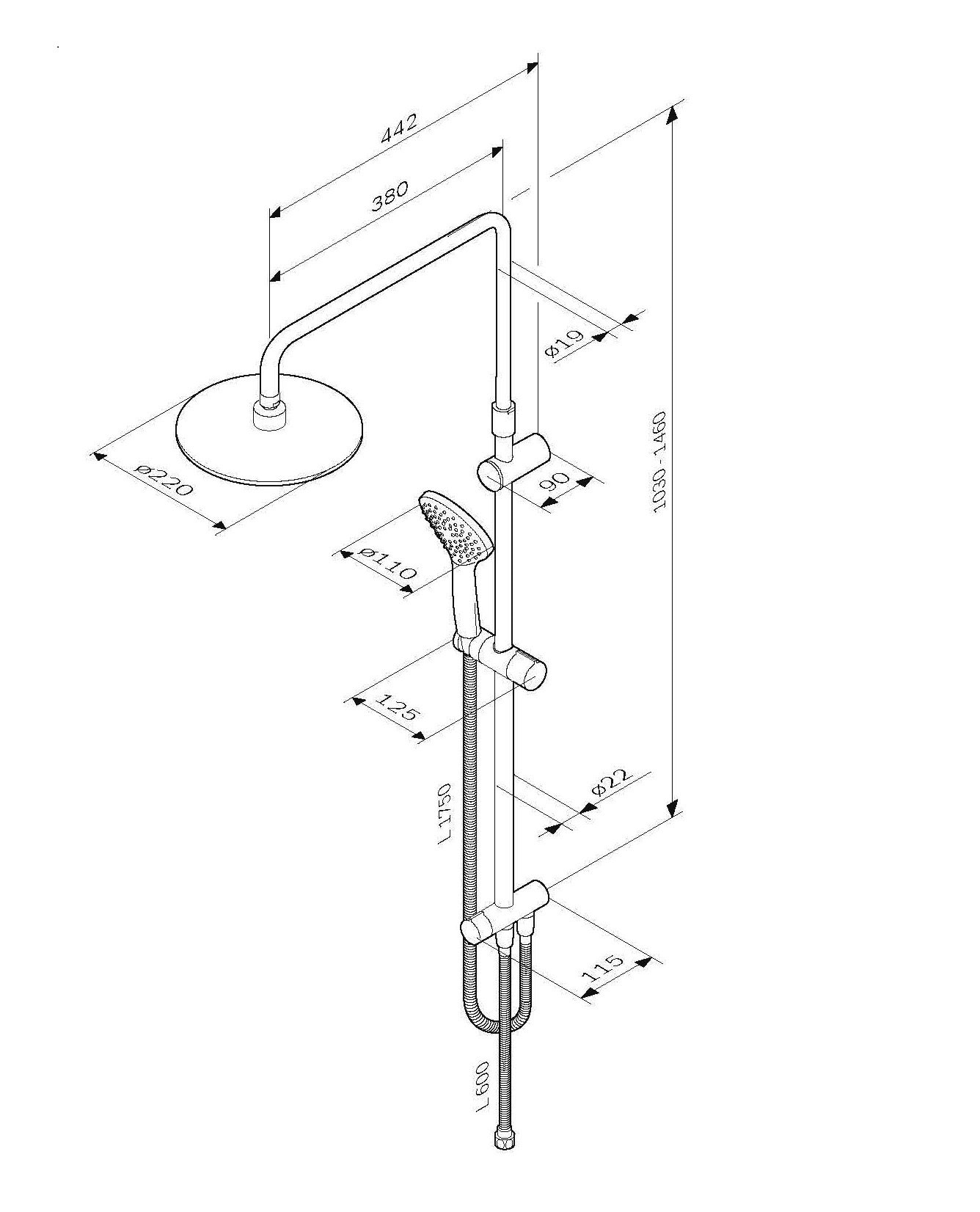 Для удобства использования предусмотрена телескопическая поворотная штанга, которая регулируется по высоте в диапазоне от 1030 до 1460 мм. Это позволяет настроить душевую систему под рост каждого члена семьи, обеспечивая максимальный комфорт.