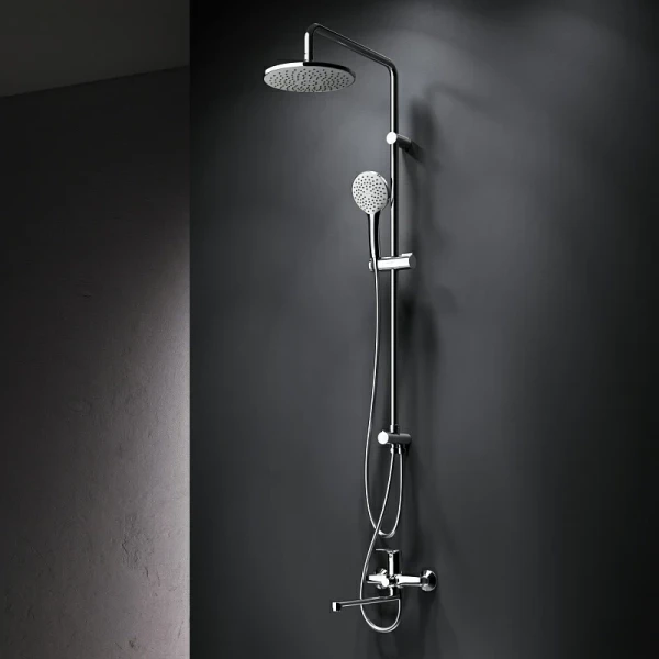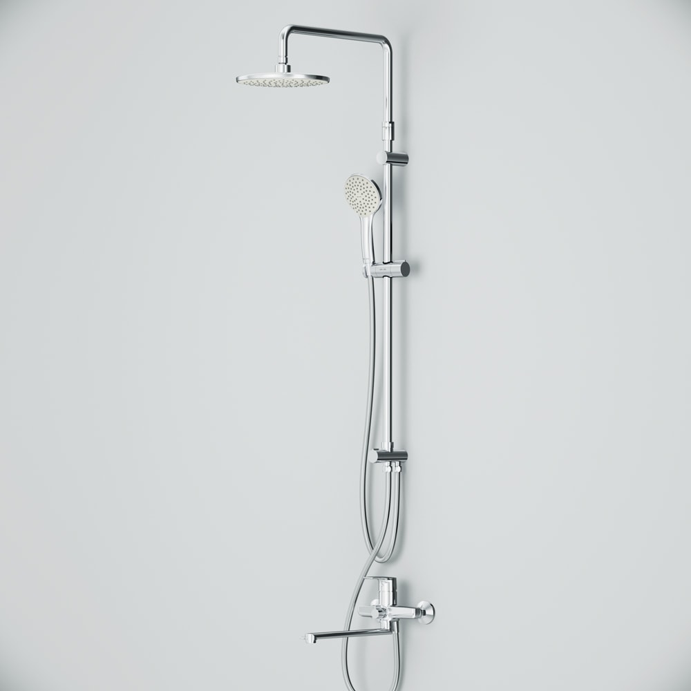 - Поворотная и телескопическая душевая штанга, позволяющая настраивать высоту верхнего душа в диапазоне от 1 030 мм до 1 460 мм.