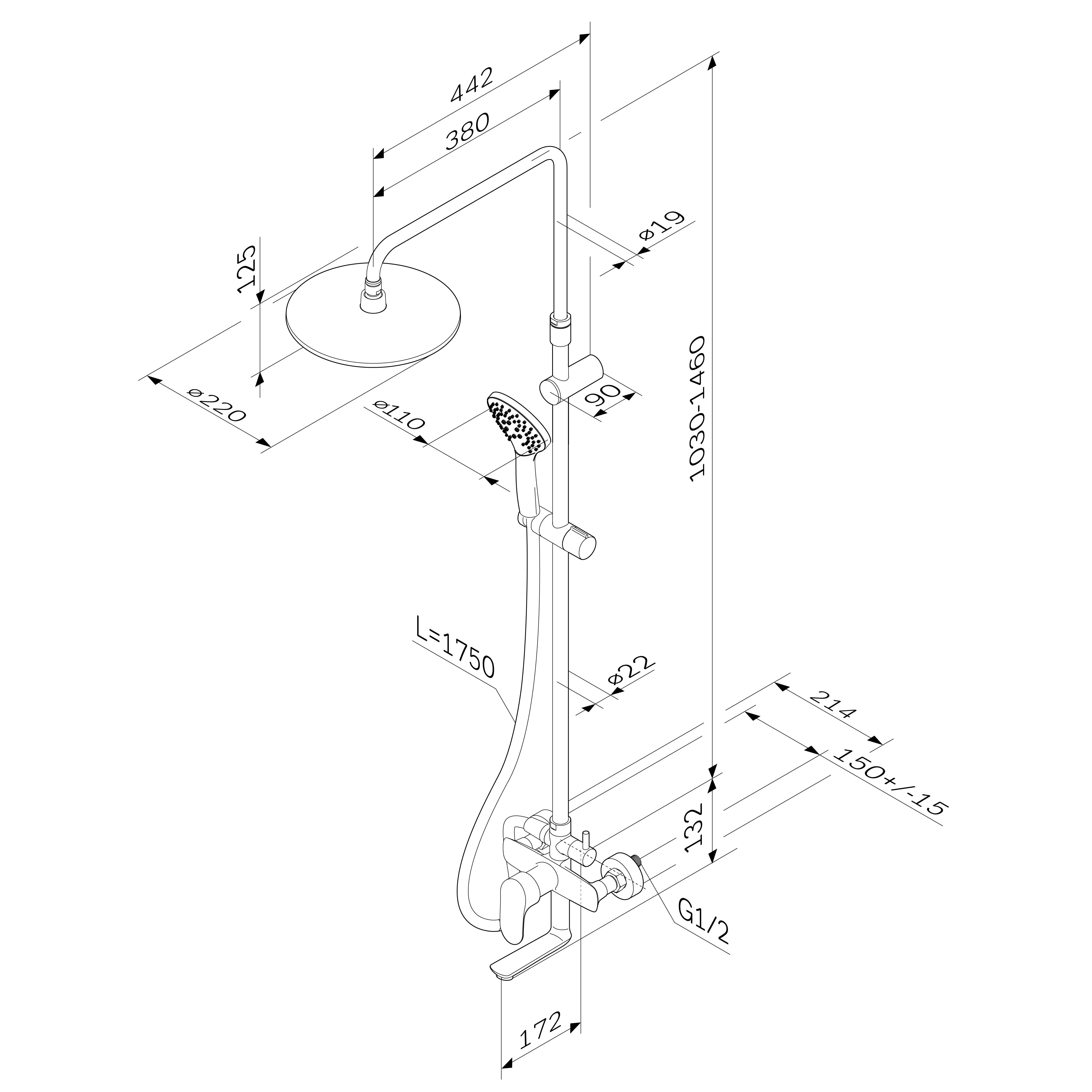 Душевая система AM.PM Like включает в себя все необходимые элементы для комфортного и приятного принятия душа. Увеличенный диаметр душевых леек (верхний душ 220 мм и ручной душ 110 мм) позволяет насладиться эффектом тропического душа, а длина шланга в 1750 мм обеспечивает свободу движений. Вы сможете легко настроить угол наклона верхнего душа благодаря шаровому шарниру в держателе, что делает использование системы еще более удобным.