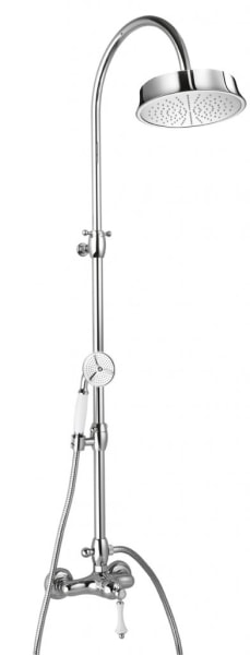 Душевая колонна выполнена в современном хромированном цвете, который легко впишется в любой интерьер. Ручка смесителя белого цвета добавляет изысканности и контраста, подчеркивая общий стиль изделия. Изготовленная из прочной латуни, данная душевая система гарантирует долговечность и надежность в эксплуатации.