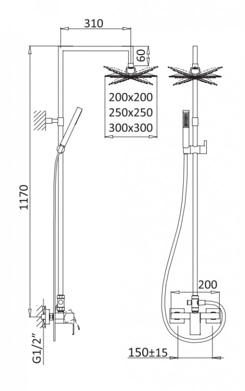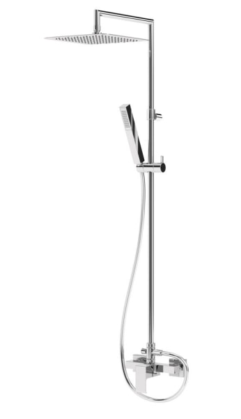Душевая система выполнена из прочной латуни и имеет хромированное покрытие, что обеспечивает долговечность и легкость в уходе. В комплект входят все необходимые элементы: душевая лейка, шланг для душа, держатель душа, дивертор и смеситель. Управление системой осуществляется с помощью удобного рычажного механизма, что делает использование максимально комфортным.