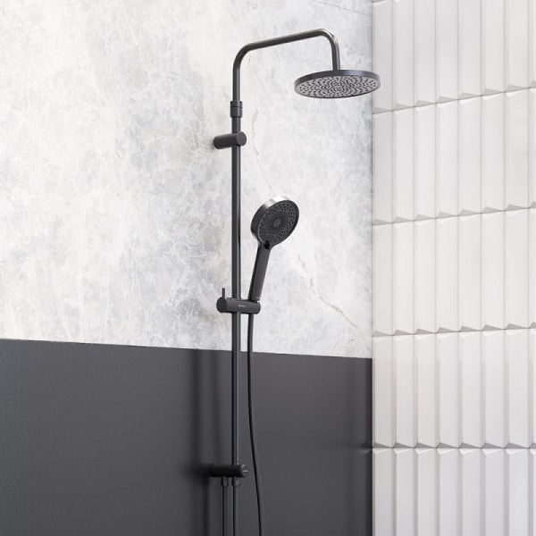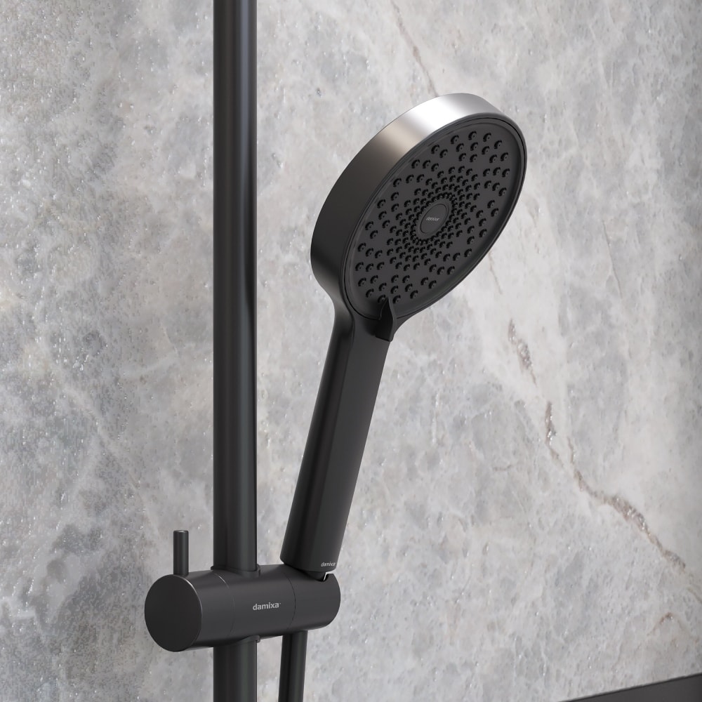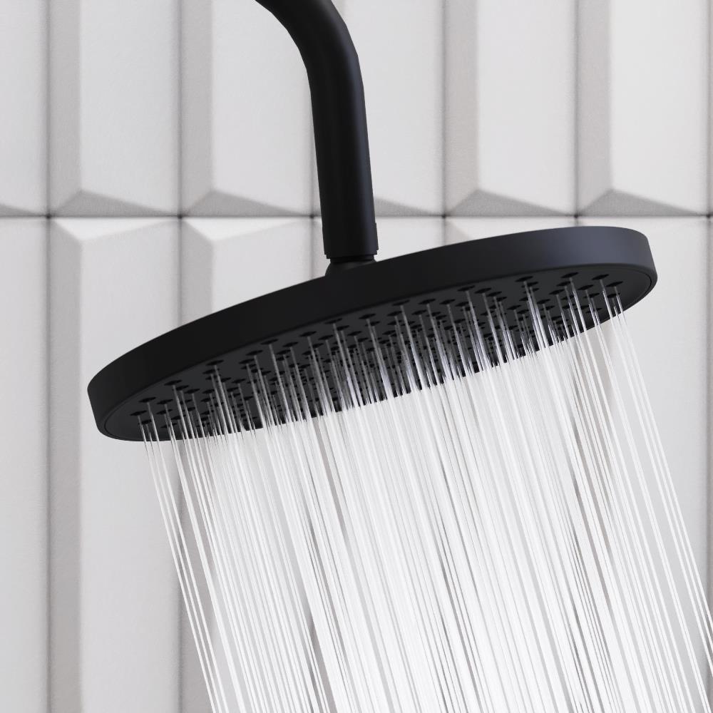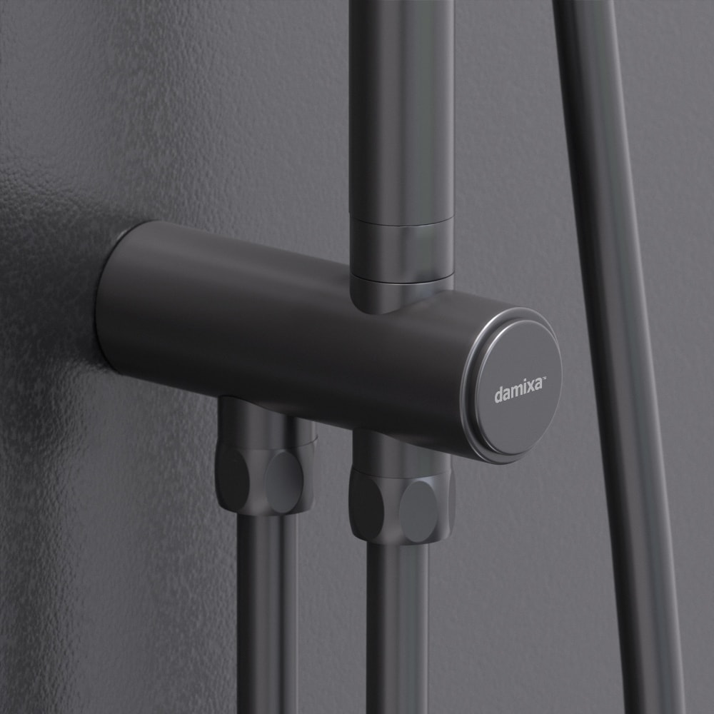 Материал душевой системы - прочный пластик, который обеспечивает долговечность и надежность. Глубокий матовый цвет дополнен покрытием High Gloss, защищающим поверхность от мелких повреждений и придающим ей стильный вид. Инженеры Damixa тщательно рассчитали оптимальное расстояние между форсунками, что обеспечивает равномерное распределение напора воды по всей лейке.