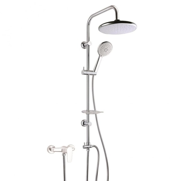 Изготовленная из высококачественной латуни и пластика ABS, душевая система Paini RS White гарантирует долговечность и надежность. В комплект входят: душевая штанга D20, настенный крепеж, верхний душ, дивертор с гибким подводом воды, металлический шланг длиной 1500 мм и 5-режимная душевая лейка.