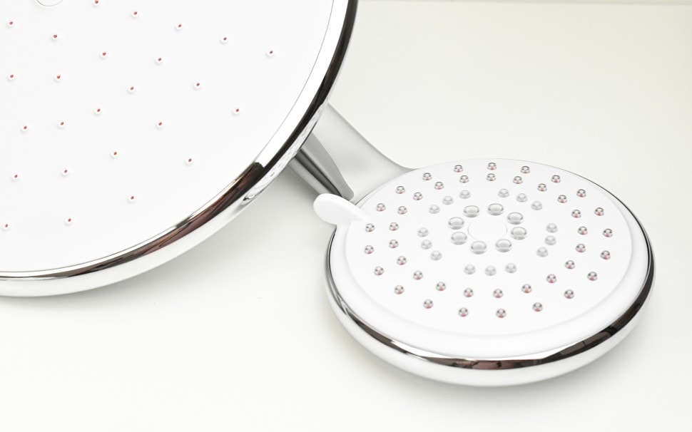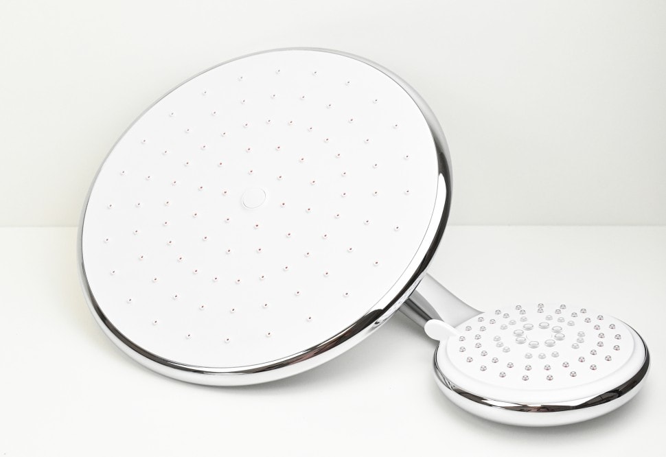 Душевая система RS White оснащена инновационной системой самоочистки верхнего душа и ручной лейки, что позволяет избежать образования известкового налета. Специальные форсунки очищают отверстия в лейке при переключении режимов, а верхний душ очищается автоматически при включении воды.
