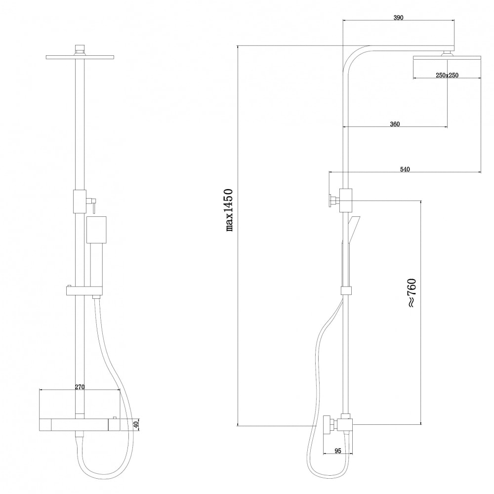 - Форма верхнего душа: квадратная