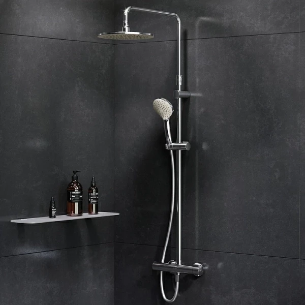 Душевая стойка AM.PM Gem оснащена смесителем с термостатом, который гарантирует безопасность и комфорт во время принятия душа. Высокочувствительный термоэлемент и стопор безопасности на 38 градусов защищают от ожогов даже при внезапном отключении холодной воды. Душевой шланг длиной 1750 мм и верхний душ диаметром 220 мм, а также ручной душ диаметром 110 мм обеспечивают максимальное удобство и функциональность.