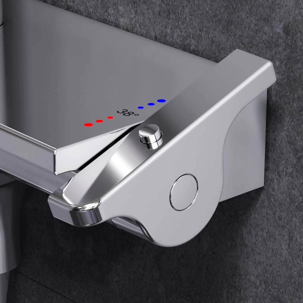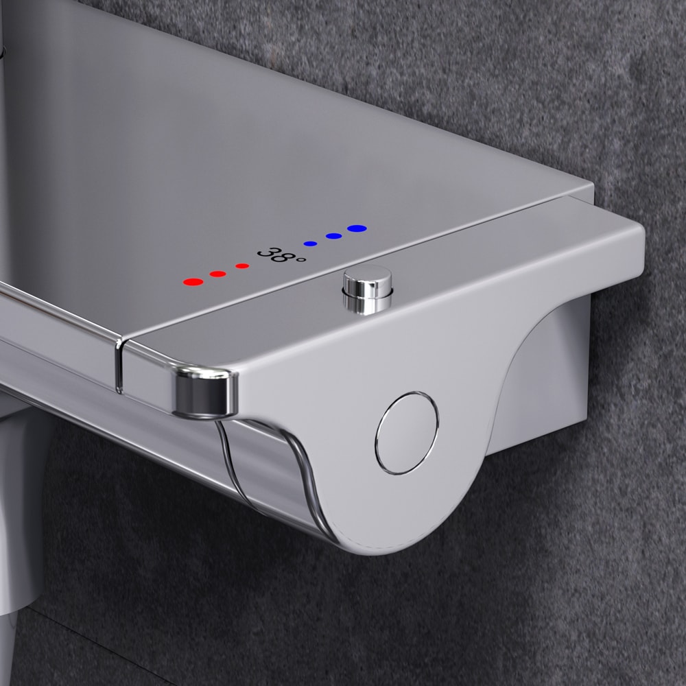 Смеситель для душа с термостатом обеспечивает комфортное использование благодаря настенной установке и картриджу с термоэлементом. Стопор безопасности на 38°C гарантирует защиту от перегрева, а запирающий и переключающий вентиль, выход для душа 1/2“ и встроенные обратные клапаны делают установку и использование максимально удобными.