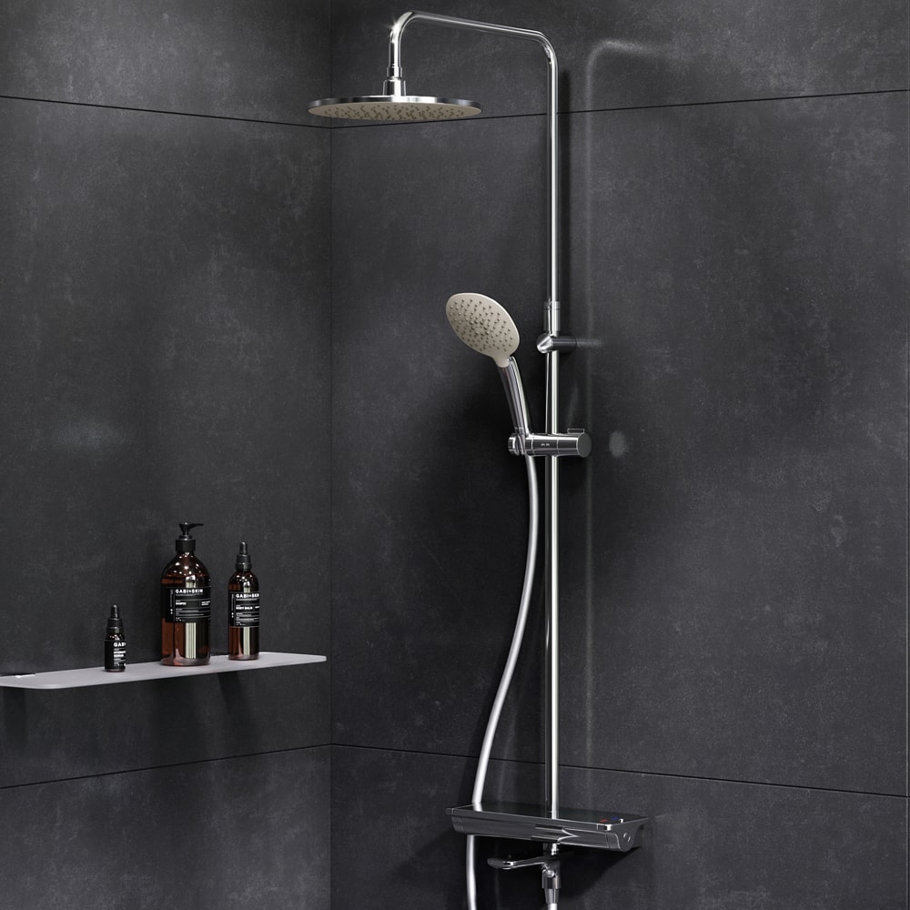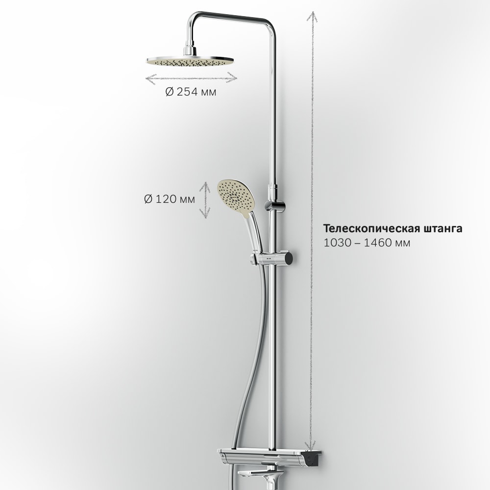 Регулируемый в трех плоскостях держатель для ручного душа и шаровый шарнир в держателе верхнего душа позволяют настроить угол наклона для максимального комфорта. Шарнирное соединение защищает душевой шланг от перекручивания, что увеличивает срок службы изделия.