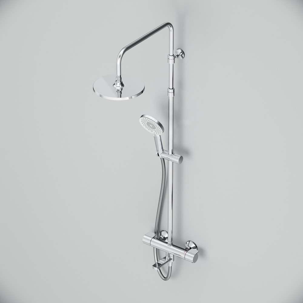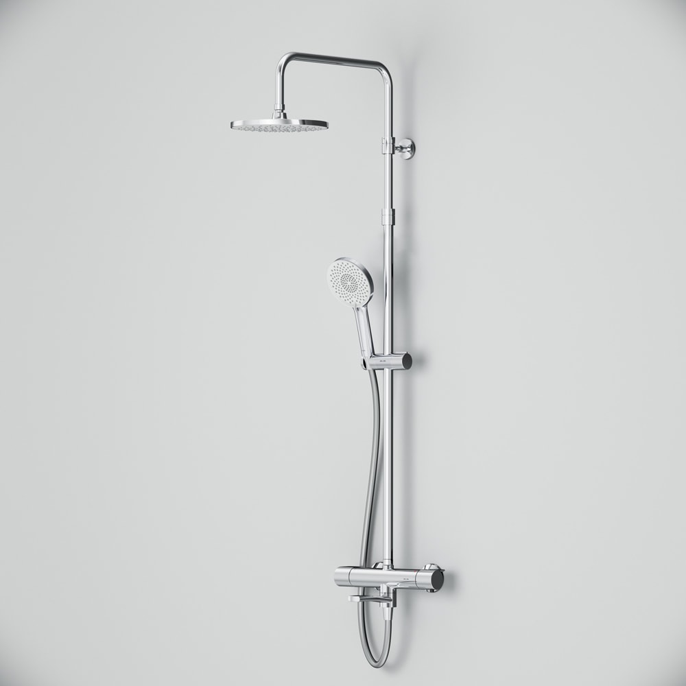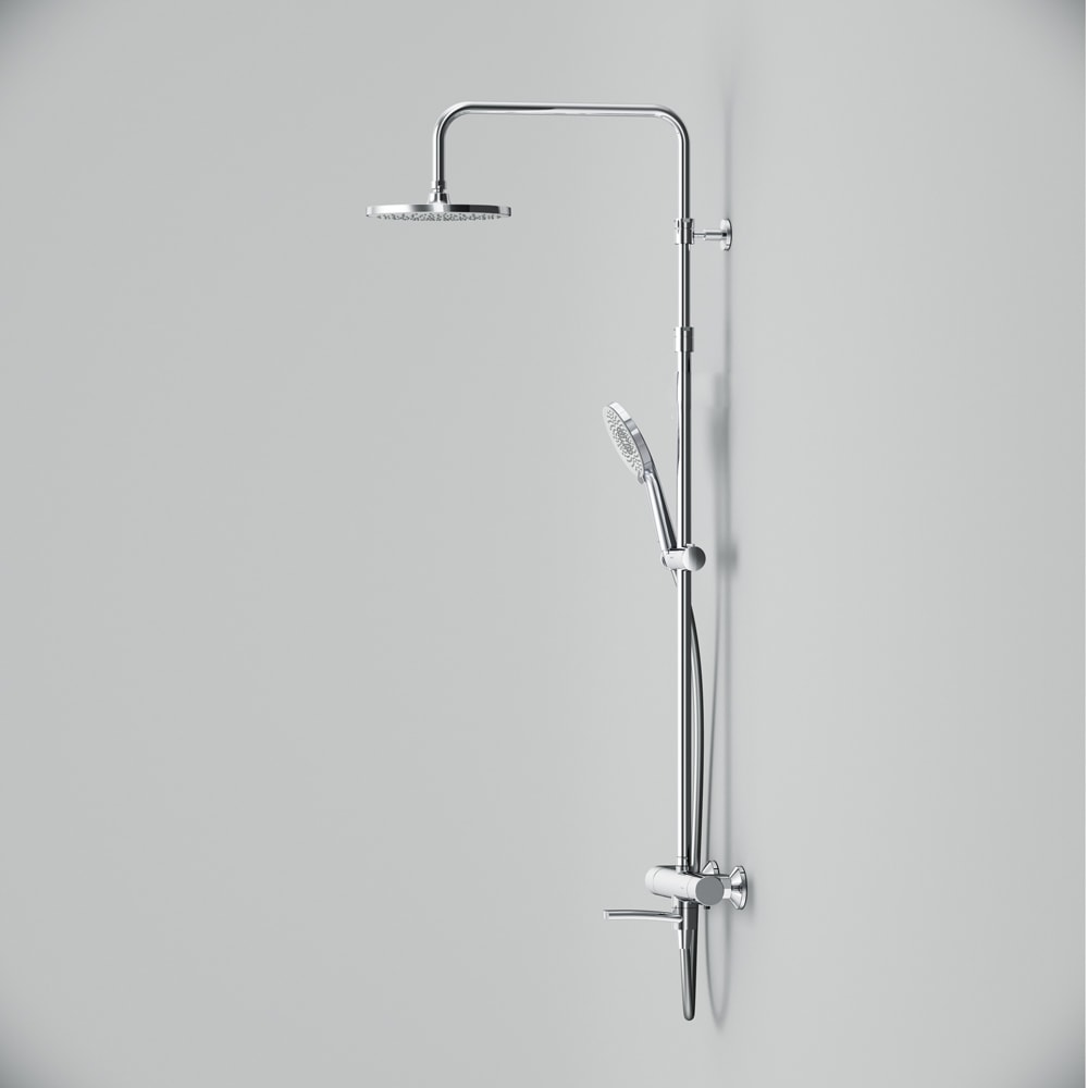 Душевая стойка выполнена из высококачественных материалов: латуни, нержавеющей стали и пластика, что обеспечивает долговечность и надежность в эксплуатации. Хромированный цвет придаёт ей современный и элегантный вид, который легко впишется в любой дизайн ванной комнаты.