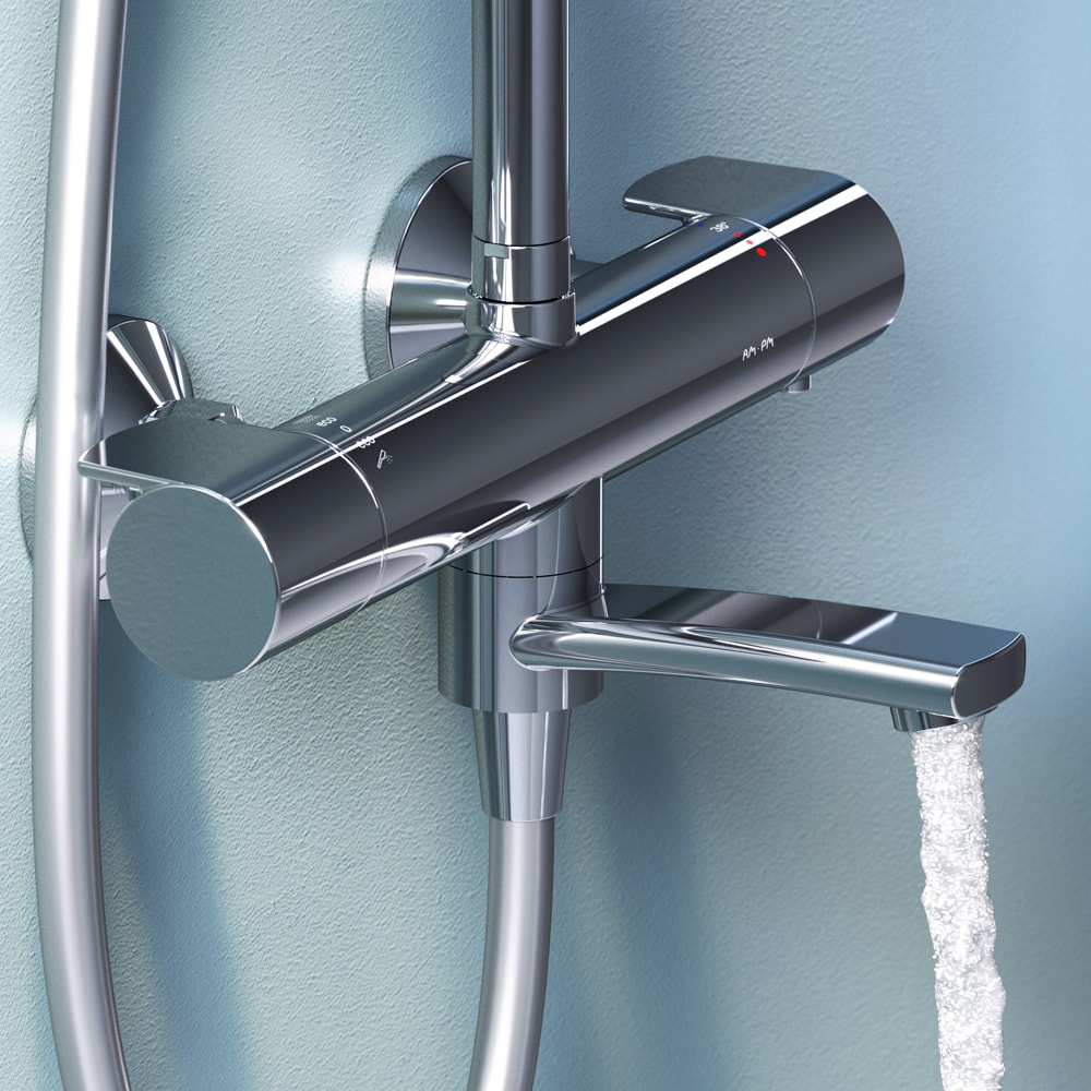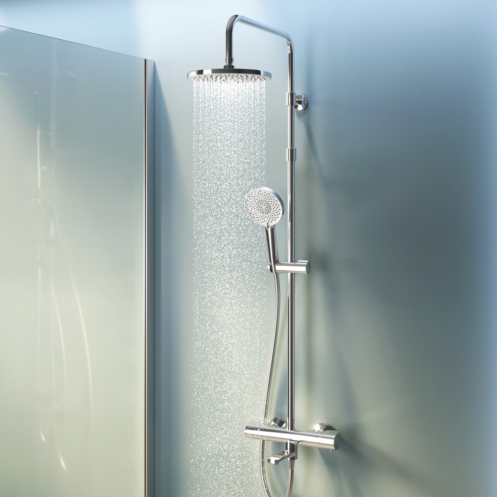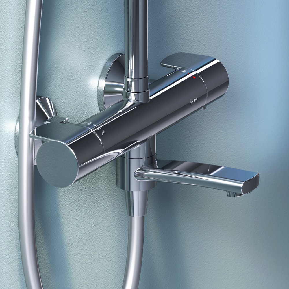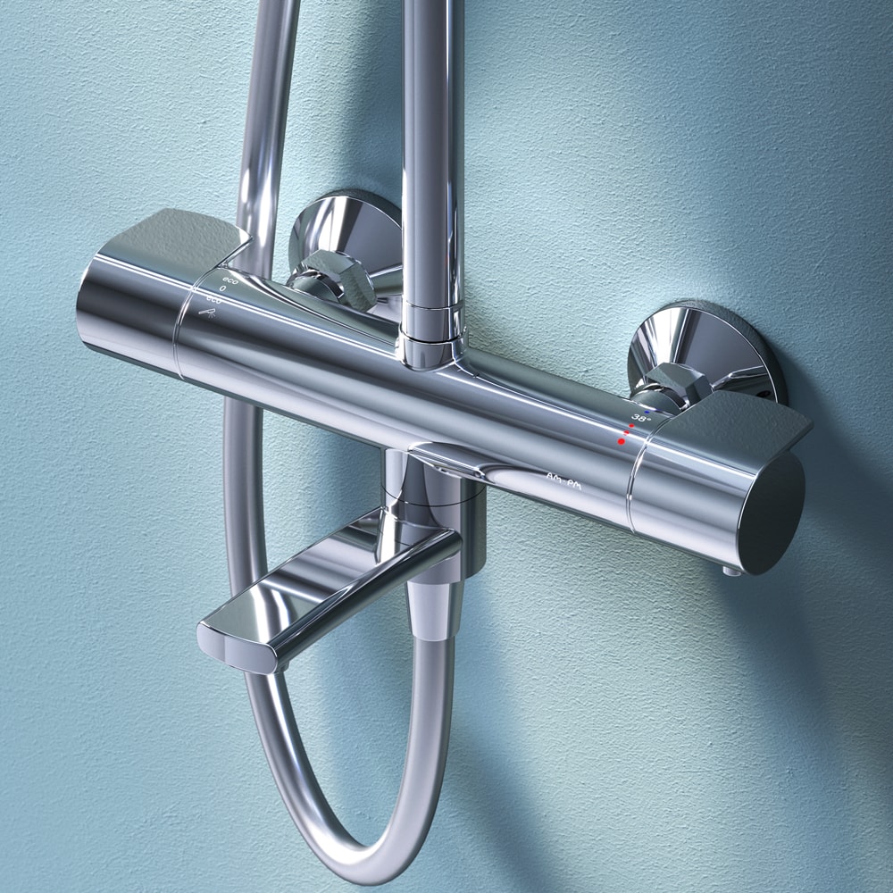 С размерами 1460 мм в высоту, 287 мм в ширину и 564 мм в глубину, данная душевая стойка идеально подходит для установки в стандартные ванные комнаты. Она комплектуется смесителем и управляется с помощью термостата, что обеспечивает комфортное и безопасное использование. Термостатический картридж с высокочувствительным термоэлементом мгновенно реагирует на изменения температуры и давления, защищая вас от ожогов даже при внезапном отключении холодной воды.