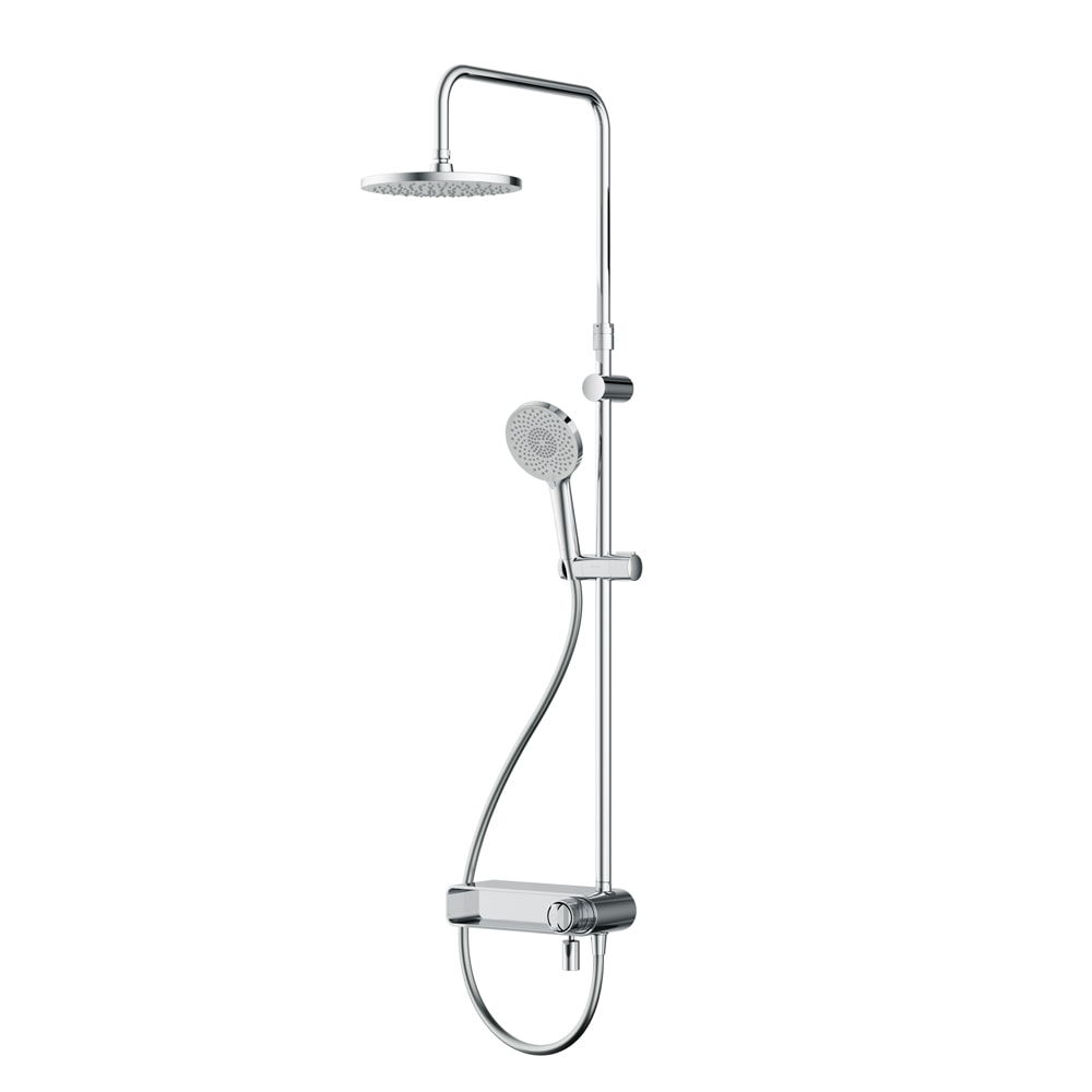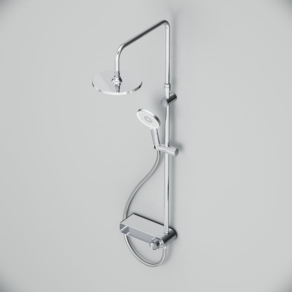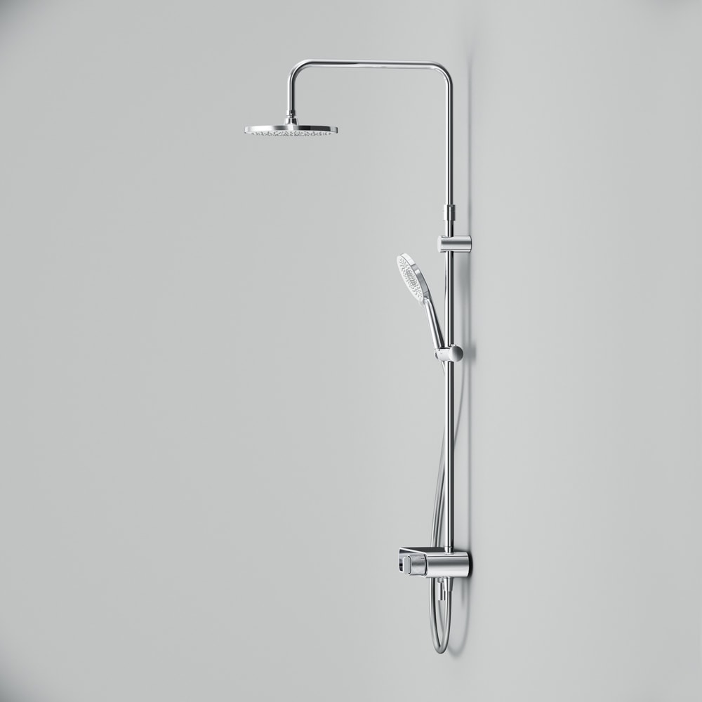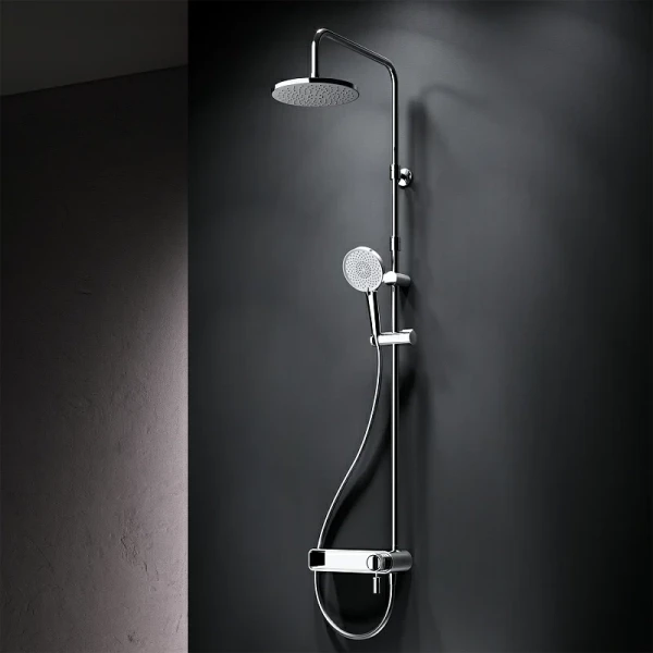 Душевая стойка выполнена из прочных материалов, таких как латунь, нержавеющая сталь и пластик, что обеспечивает долговечность и надежность в эксплуатации. Хромированный цвет придаёт изделию элегантный вид, который легко впишется в любой интерьер.