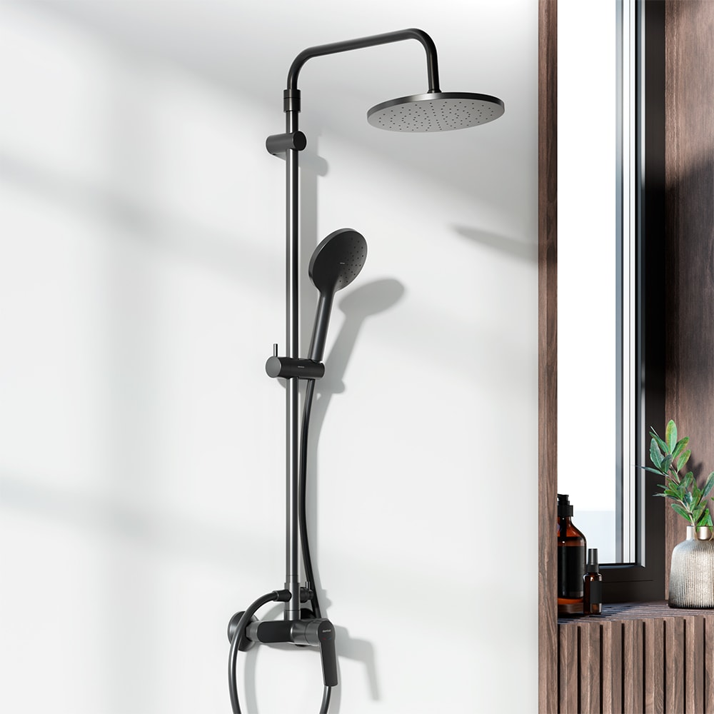Инновационное PVD-покрытие гарантирует чрезвычайную прочность душевой системы. Матово-черная поверхность не выцветает с годами и устойчива к механическим повреждениям, загрязнениям и отпечаткам пальцев, что делает ее идеальным выбором для активного использования.