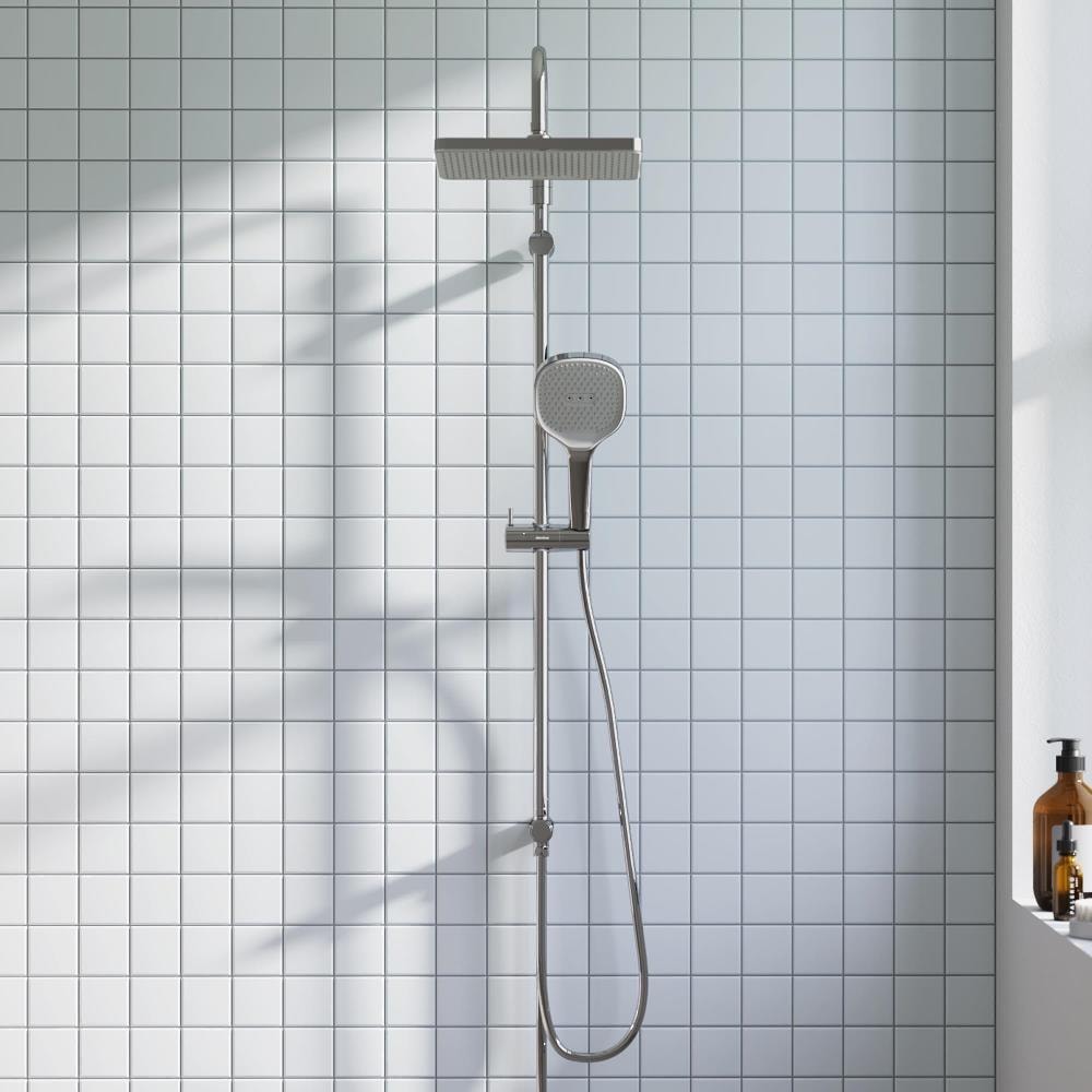 Минималистичный дизайн и простота в использовании — это то, что отличает душевую стойку Damixa. Переключение потоков воды между ручной и тропической лейкой осуществляется всего одним нажатием, что делает процесс еще более удобным.