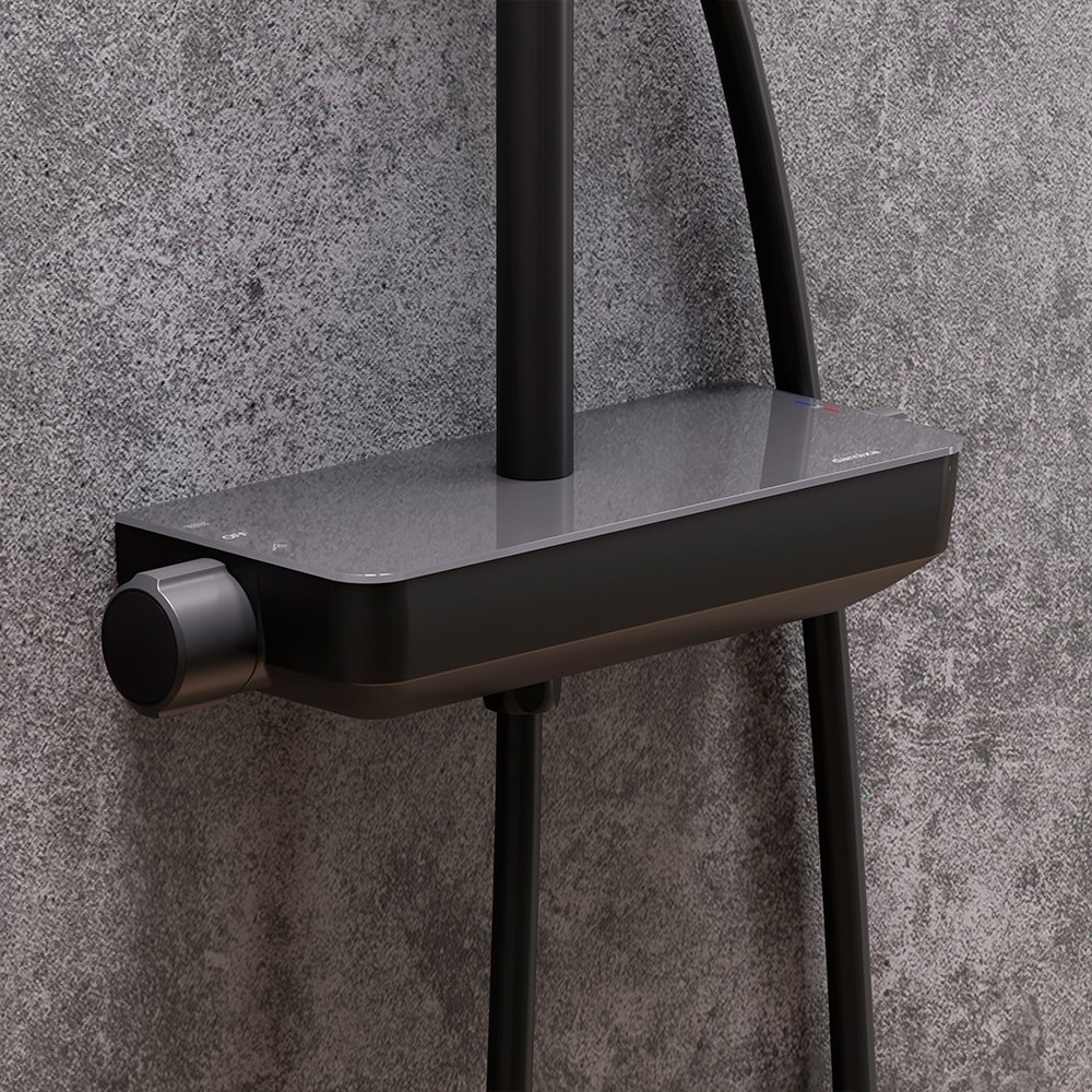 Эта душевая стойка выполнена из высококачественной латуни и пластика, что обеспечивает долговечность и надежность. Матовая черная поверхность придаёт ей элегантный вид, а обтекаемые формы делают её идеальным дополнением к любому интерьеру. Размеры душевой стойки: высота 1450 мм, ширина 372 мм и глубина 497 мм, что позволяет легко интегрировать её в пространство вашей ванной.
