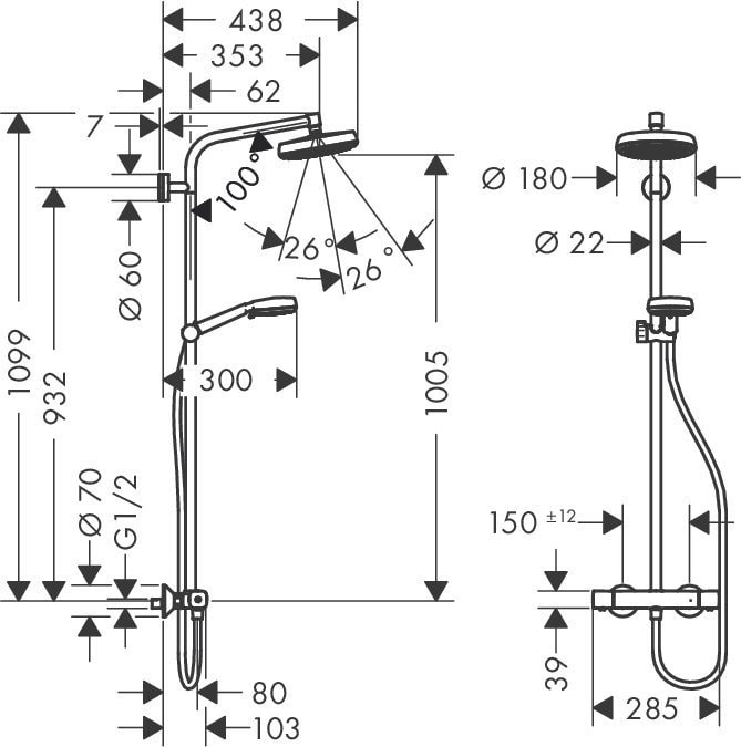 Душевая стойка Hansgrohe Crometta 160 (артикул 27264400)