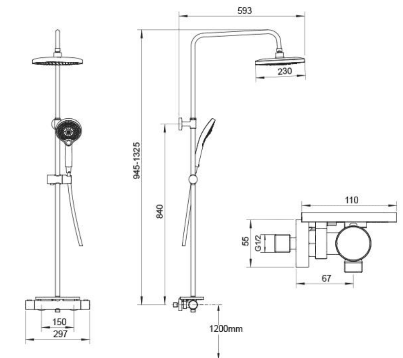 Душевая стойка выполнена из качественных материалов, таких как нержавеющая сталь и латунь, что обеспечивает долговечность и надежность. Хромированный цвет придаёт ей элегантный вид, а компактные размеры (высота 1325 мм, ширина 297 мм, глубина 593 мм) позволяют легко интегрировать её в любое пространство.