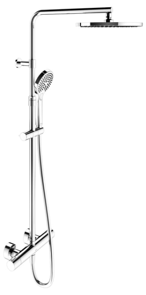 В комплекте с душевой стойкой идет смеситель, который обеспечивает удобное управление температурой воды благодаря термостату. Вы сможете наслаждаться комфортом, зная, что система имеет предохранительную блокировку при 38°C, что особенно важно для семей с детьми.