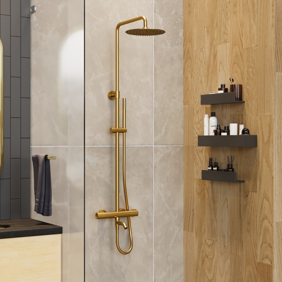 Душевая стойка Paini Cox 78PJ687THSSD250F1B с термостатом в брашированном золоте