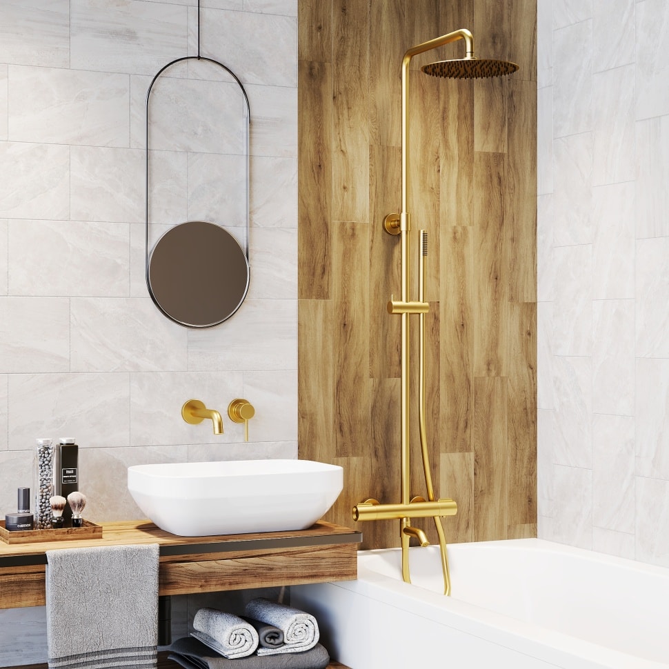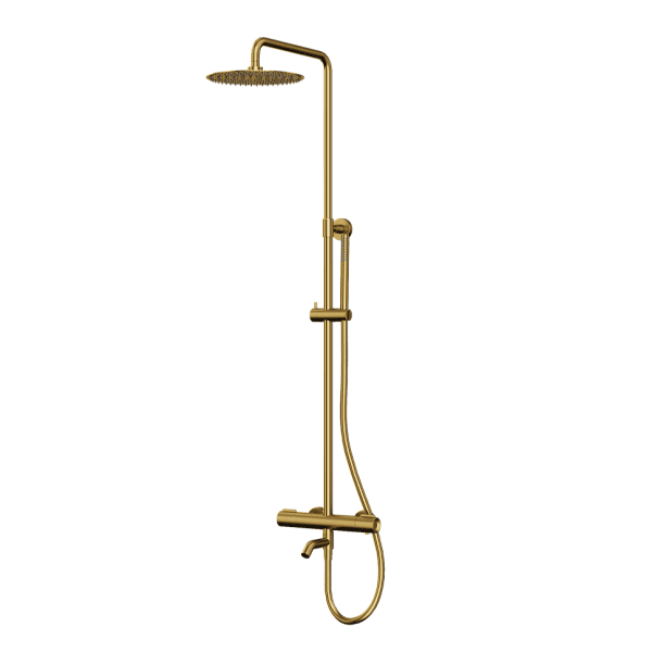 Душевая стойка Paini Cox выполнена из прочной латуни и нержавеющей стали, что обеспечивает долговечность и надежность. Брашированное золото придаёт изделию роскошный вид, а также защищает от царапин и загрязнений, что делает уход за ним простым и удобным.
