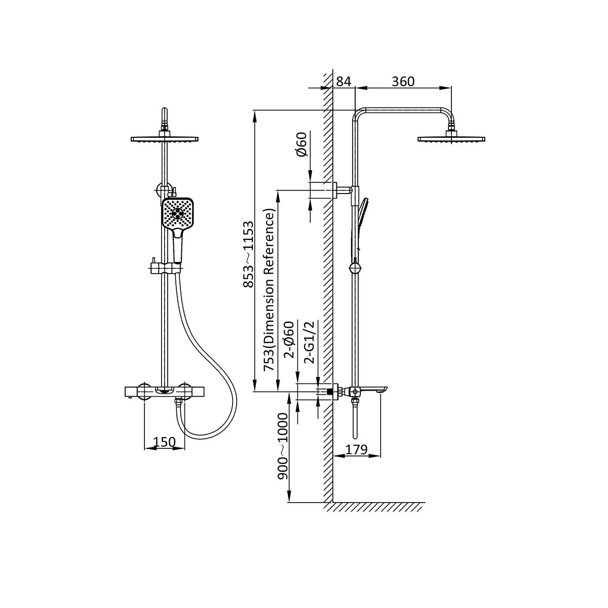 - Поворотный верхний душ для удобства.
