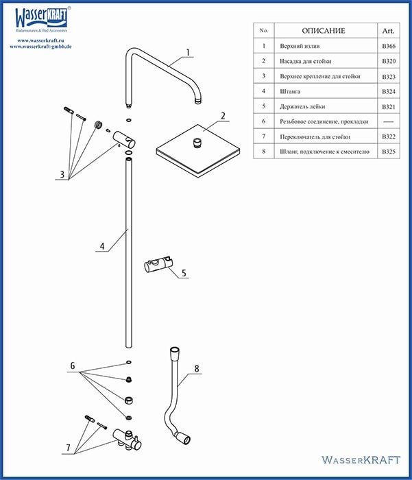 Душевая стойка WasserKRAFT A040 идеально подходит для установки в сочетании с другими элементами коллекции, такими как смесители и аксессуары. Она легко монтируется и подключается к любому смесителю для ванной комнаты, что делает её универсальным решением для вашего дома.