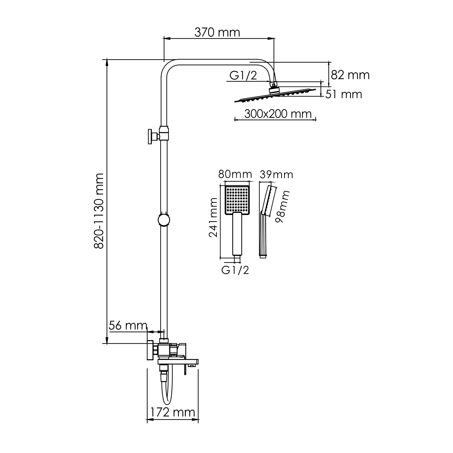 Душевая стойка WasserKRAFT A177.069.141.087.CH имеет следующие размеры: высота — 520 мм, ширина — 300 мм и глубина — 1130 мм, что позволяет легко интегрировать её в любое душевое пространство. В комплект входит всё необходимое для комфортного использования: