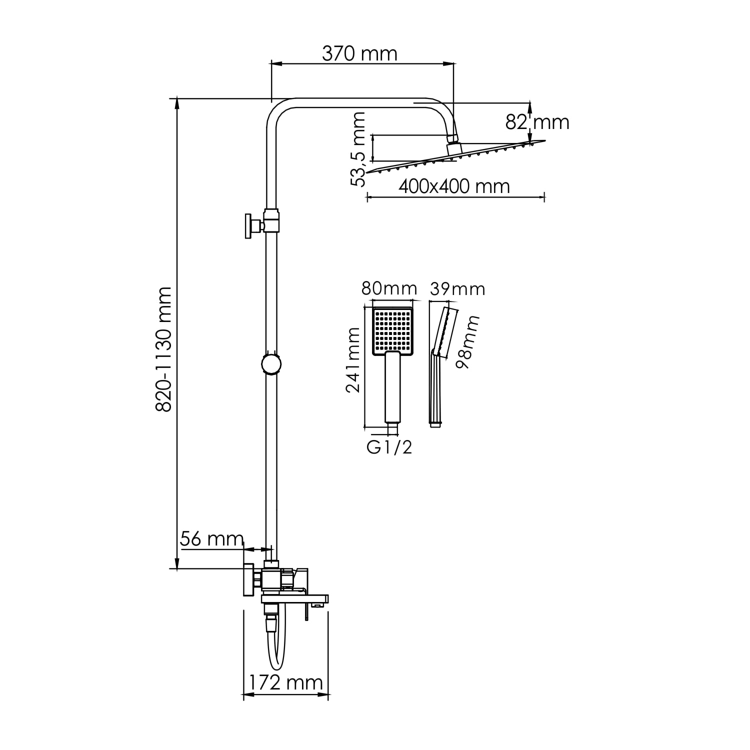 Душевая стойка выполнена из прочного ABS-пластика и имеет стильное хромированное покрытие, что обеспечивает не только долговечность, но и легкость в уходе. С размерами 1130 мм в глубину, 570 мм в высоту и 400 мм в ширину, она идеально впишется в любое пространство.