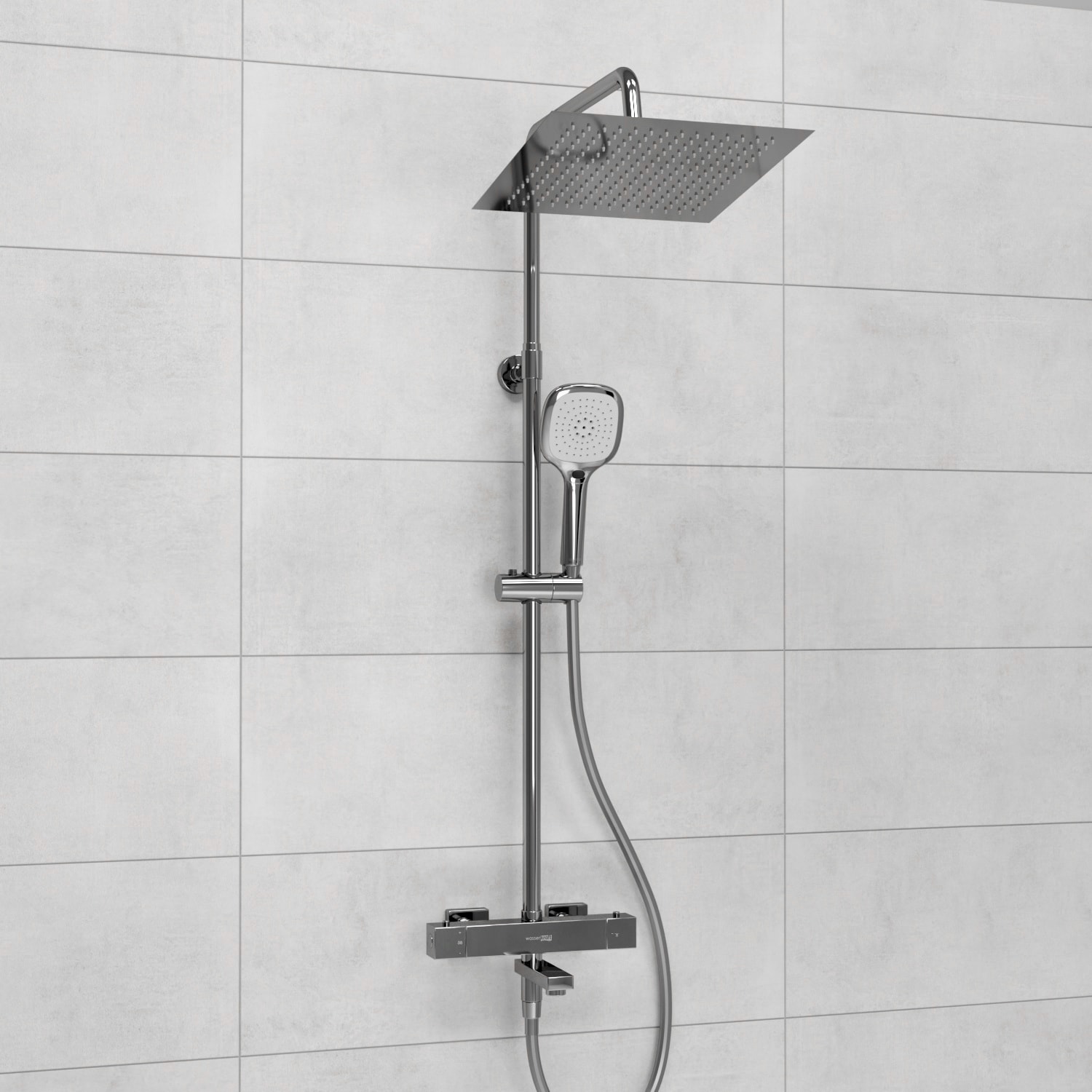 Управление душевой стойкой осуществляется с помощью термостата, что позволяет легко и быстро настраивать желаемую температуру воды. Это особенно удобно для семей с детьми, обеспечивая безопасность и комфорт во время купания.