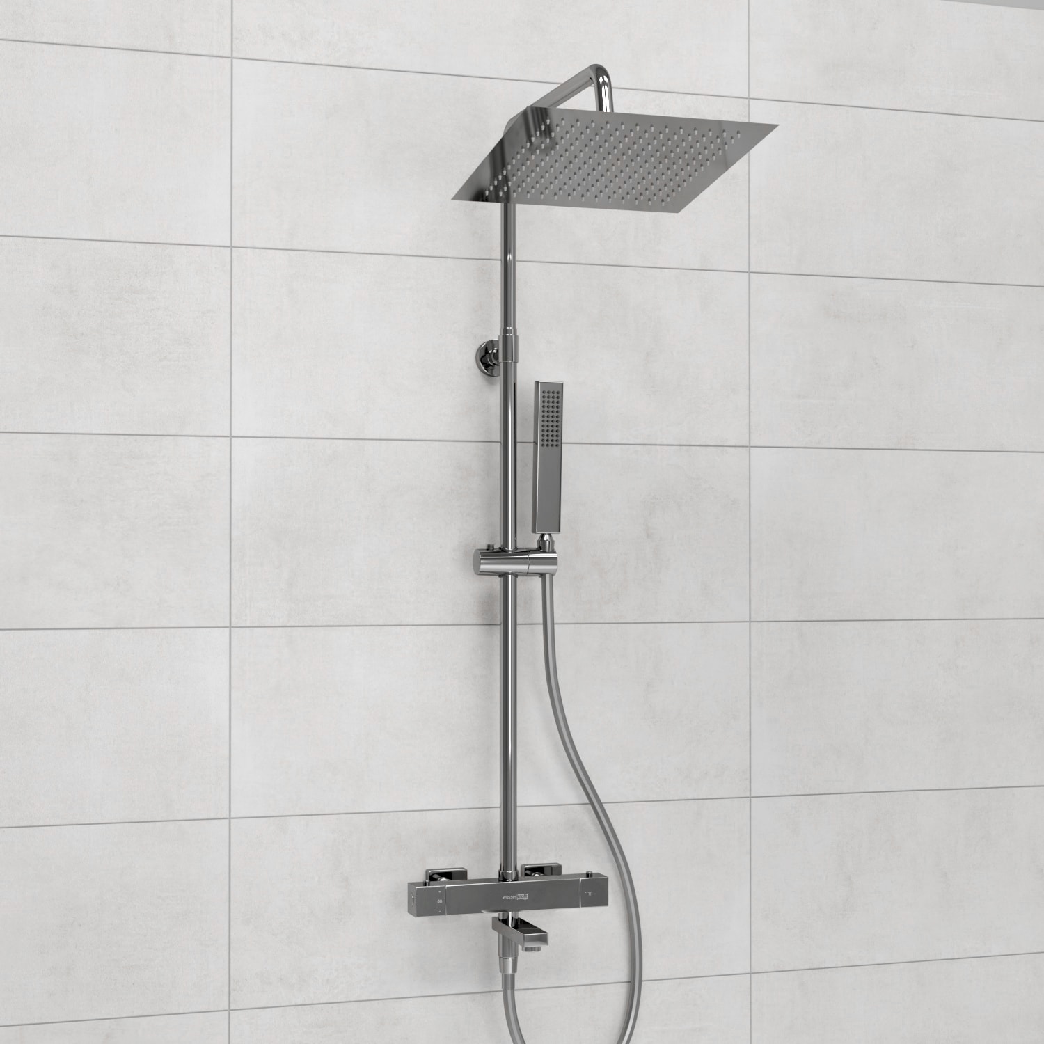 Управление душевой стойкой осуществляется с помощью термостата, что обеспечивает стабильную температуру воды и предотвращает ее резкие колебания. Это особенно важно для семей с детьми или пожилыми людьми.