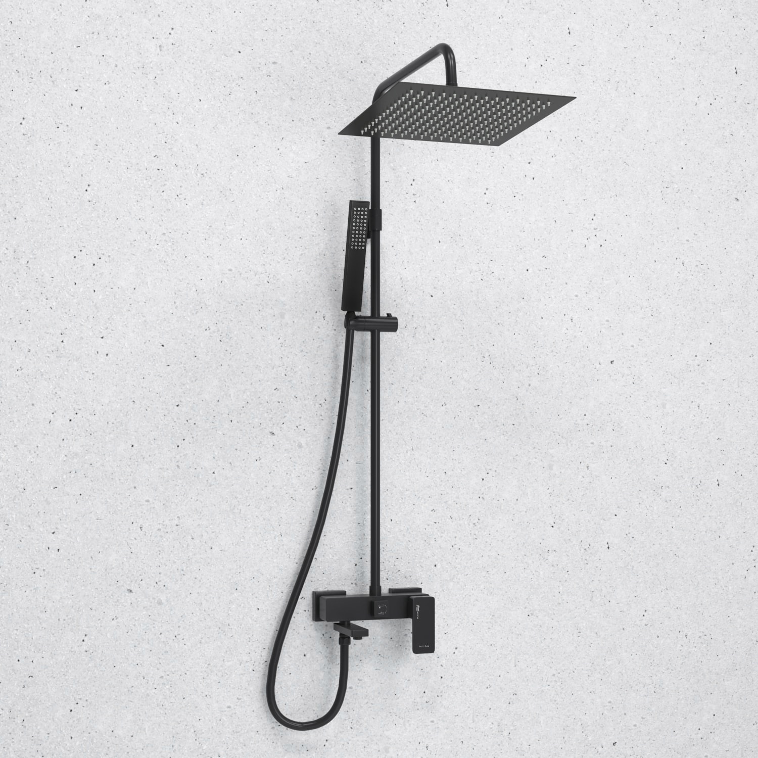 В комплект поставки входят все необходимые элементы для установки: смеситель для ванны, верхний душ, ручной душ, душевой шланг, держатель ручного душа и душевая штанга. Это делает процесс монтажа простым и удобным.