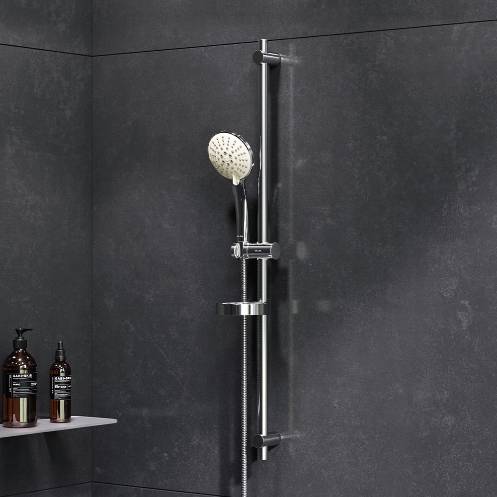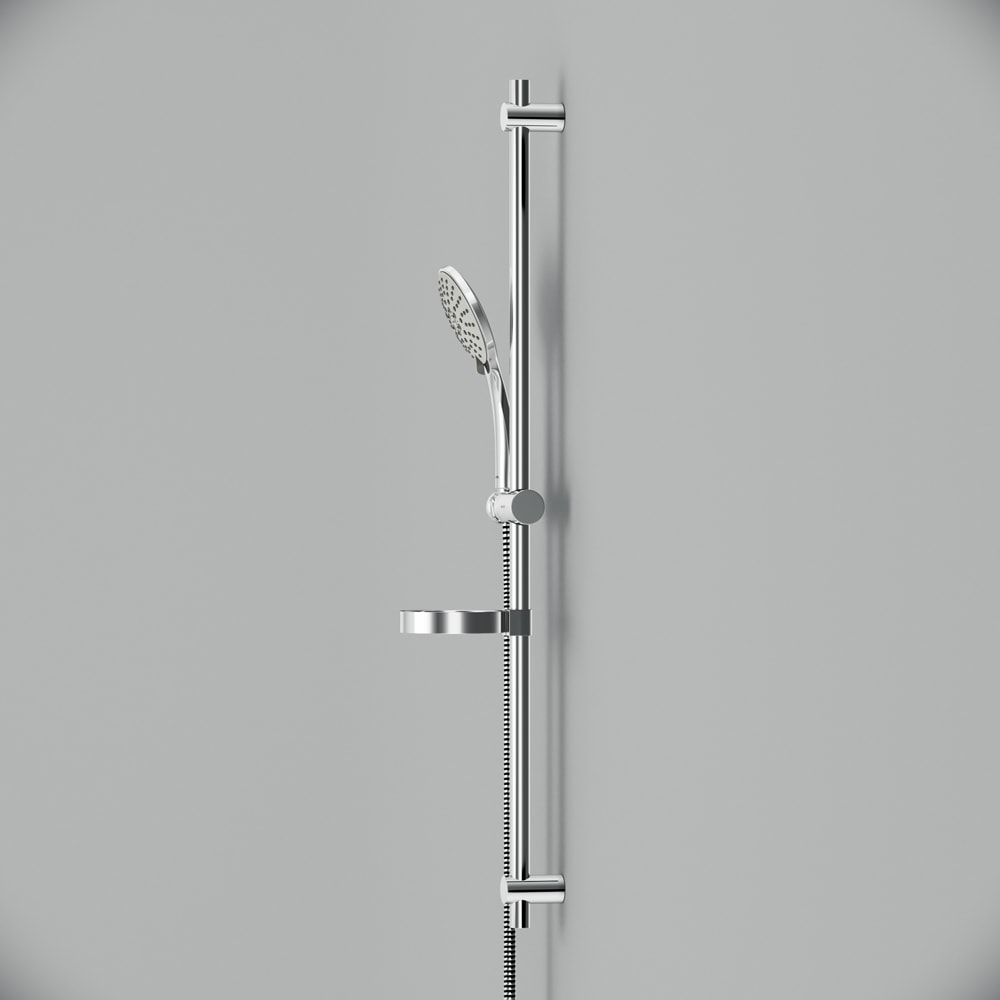 Душевой гарнитур выполнен из прочной латуни и имеет хромированное покрытие, что обеспечивает долговечность и легкость в уходе. Длина гарнитура составляет 900 мм, а диаметр лейки – 110 мм, что позволяет создать комфортные условия для принятия душа. Уникальный дизайн с идеально ровными поверхностями подчеркивает премиальный сегмент данного продукта.