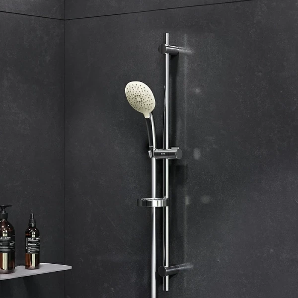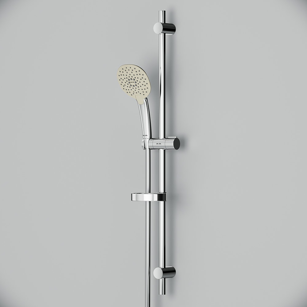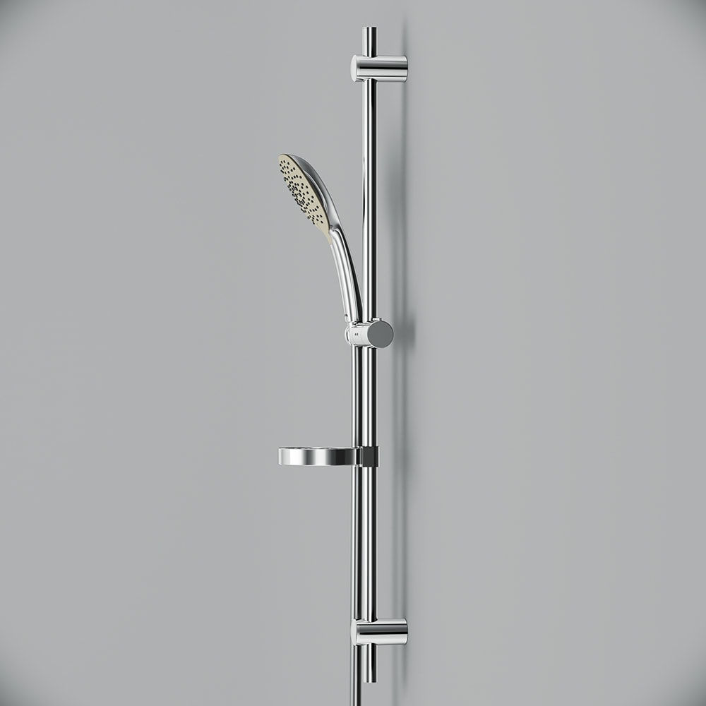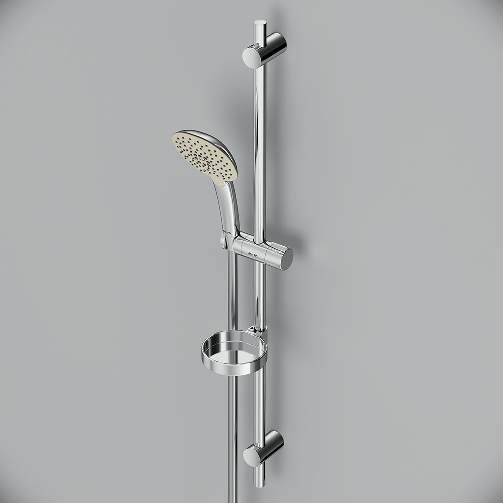 Гарнитур предлагает продуманные детали для удобства использования: регулируемые по высоте держатели душевой штанги, а также три режима работы ручного душа – Spray, EnerJet и Spray + Massage. Переключение между режимами осуществляется с помощью простого и удобного механизма Simple Switch Push.