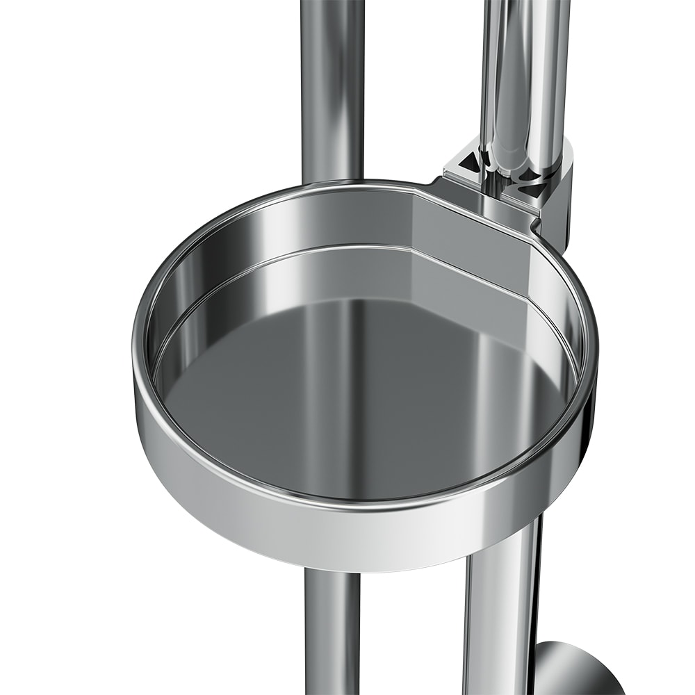 Функция Rub&Clean позволяет легко очищать душевые форсунки от налета, что значительно упрощает уход за гарнитуром. В комплект также входит хромированная мыльница диаметром 110 мм и регулируемый в трех плоскостях держатель ручного душа, который обеспечивает максимальный комфорт при использовании. Шарнирное соединение защищает душевой шланг от перекручивания, что увеличивает срок службы изделия.