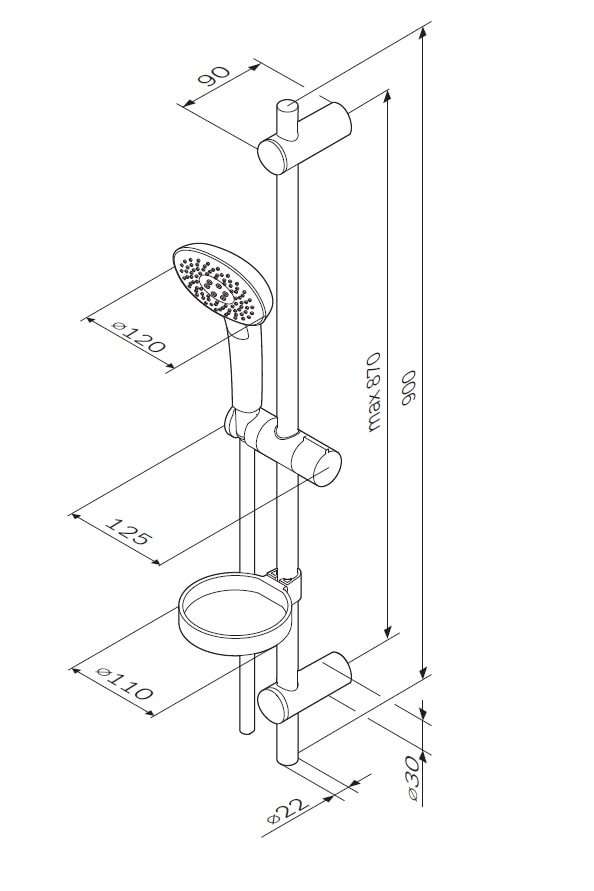 Душевой гарнитур выполнен из качественной латуни и представлен в стильном хромированном цвете, что обеспечивает не только долговечность, но и легкость в уходе. Высота гарнитура составляет 900 мм, а ширина – 125 мм, что позволяет удобно разместить его в любом душевом уголке.