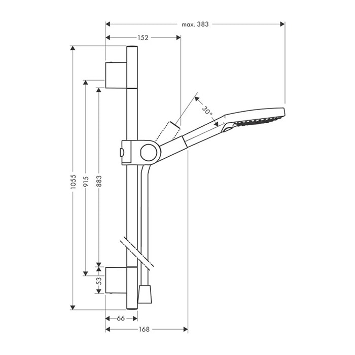 Дистанция сверления составляет 915 мм, а шарнирный соединитель предотвращает спутывание шланга, что делает использование душевого гарнитура еще более удобным.