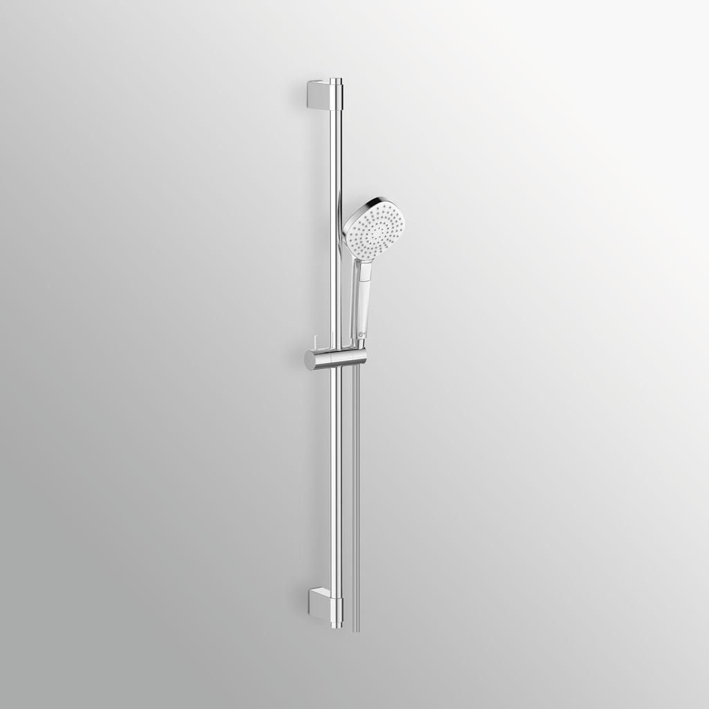 Гарнитур также включает шланг длиной 1750 мм с силиконовым покрытием IDEALFLEX®, который обеспечивает гибкость и удобство в использовании. Штанга длиной 900 мм с регулируемыми кронштейнами позволяет легко настроить высоту и угол наклона лейки, что делает процесс принятия душа ещё более комфортным.