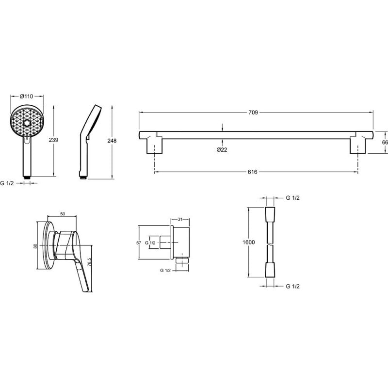 Управление душевым гарнитуром осуществляется с помощью удобного рычажного механизма, что позволяет легко регулировать поток воды и температуру. Душевая лейка диаметром 11 см обеспечивает комфортный и равномерный поток воды, а шланг длиной 160 см позволяет свободно перемещаться во время принятия душа.