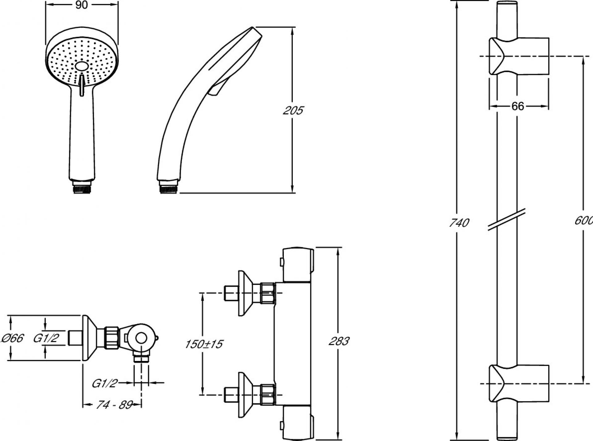 С размерами 740 мм в высоту, 283 мм в ширину и 95 мм в глубину, этот душевой гарнитур идеально впишется в любую ванную комнату, независимо от ее размеров. Комплектация с смесителем позволяет вам сразу же установить гарнитур и наслаждаться им без лишних затрат и усилий.