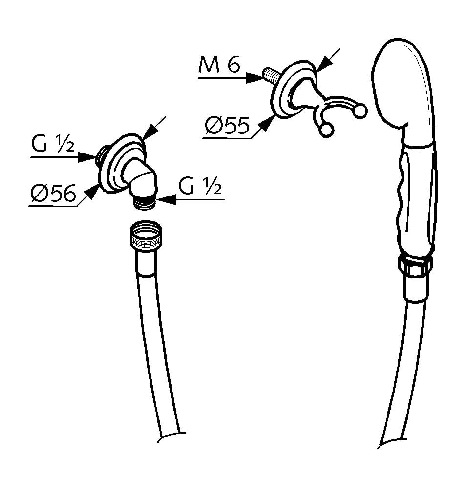 - Душевой шланг длиной 1600 мм с соединениями G 1/2 x G 1/2
