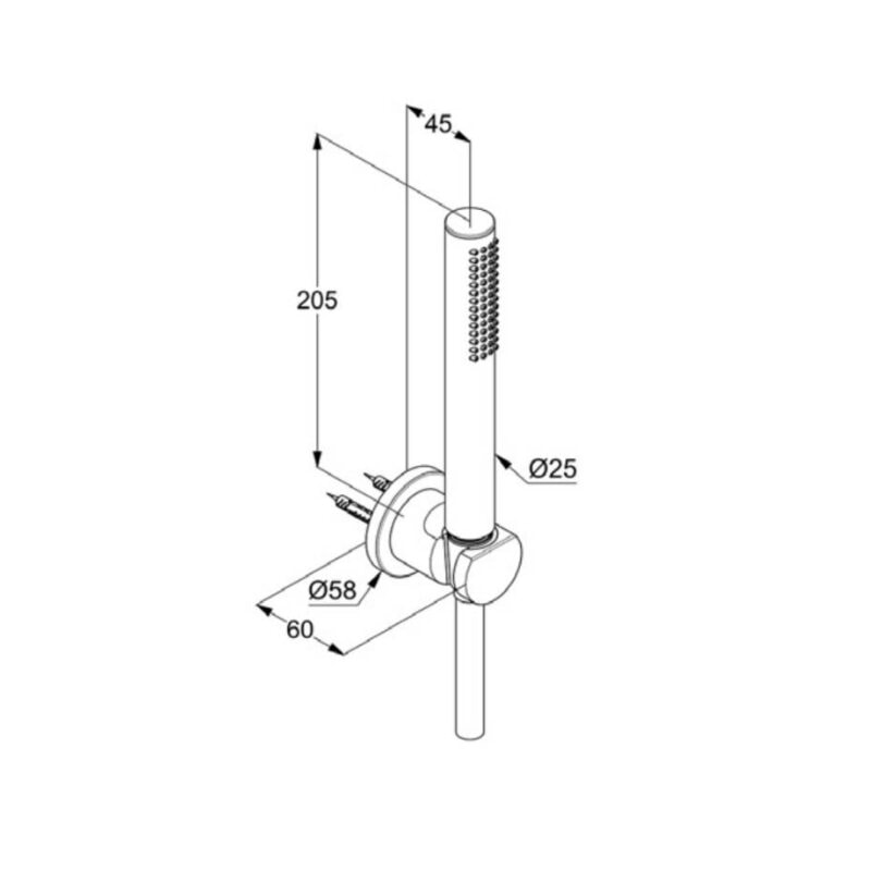 Душевой гарнитур выполнен в белом матовом цвете, что придаёт ему элегантный и современный вид. Изготовленный из прочной латуни, он гарантирует долговечность и надежность в использовании. Размеры гарнитура составляют: высота - 205 мм, ширина - 58 мм, глубина - 45 мм, что позволяет легко интегрировать его в любое пространство.