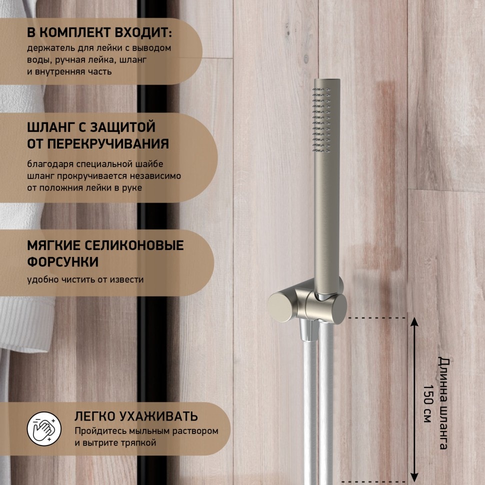 - В комплект входит держатель для лейки с выводом воды, ручная лейка и шланг, что обеспечивает максимальное удобство в использовании.